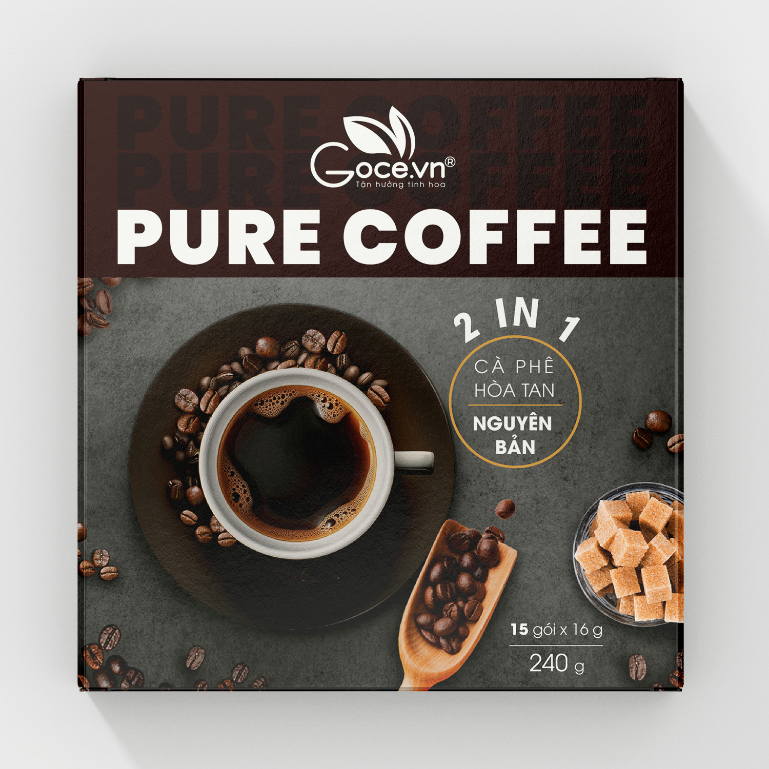 ✨Pure Coffee Goce - Cafe Đen hòa tan 2 trong 1 - 240g (15 gói x 16g)