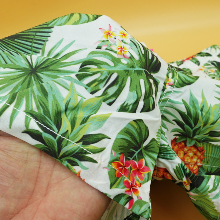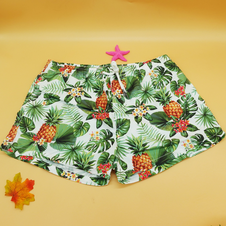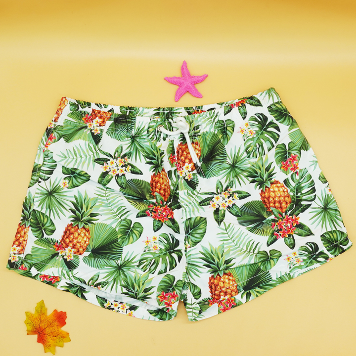 Quần short Nam vải phi lụa đi biển, mặc nhà in hoa lá trái cây nhiệt đới MSP: A110 Lưu ý: Quí khách xem bảng hướng dẫn đo size cho chính xác ( xem ảnh