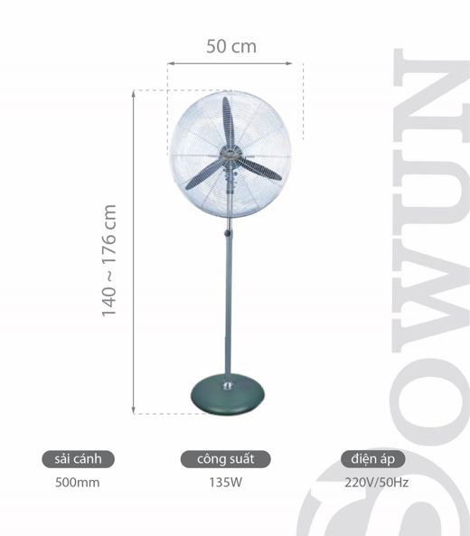 Quạt công nghiệp Sowun SW 898 với 03 cánh quạt bằng nhôm đường kính cánh lên tới 500 mm (20 inches) sẽ tạo lưu lượng gió mạnh nhiều hơn đem lại hiệu quả làm mát tối đa ở những không gian rộng rãi, đông người như trong các nhà hàng, quán ăn, nhà xưởng, công ty, hội trường, tiệc cưới, trường học…