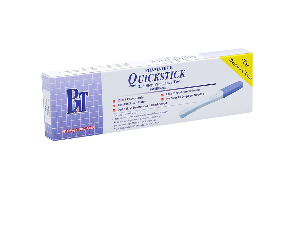 Quickstick là thương hiệu que thử thai đầu tiên ở Việt Nam, được Công ty PHAMATECH sản xuất 100% tại Hoa Kỳ, do Công ty TNHH TM Thành Kim Sơn Phamatech độc quyền phân phối.