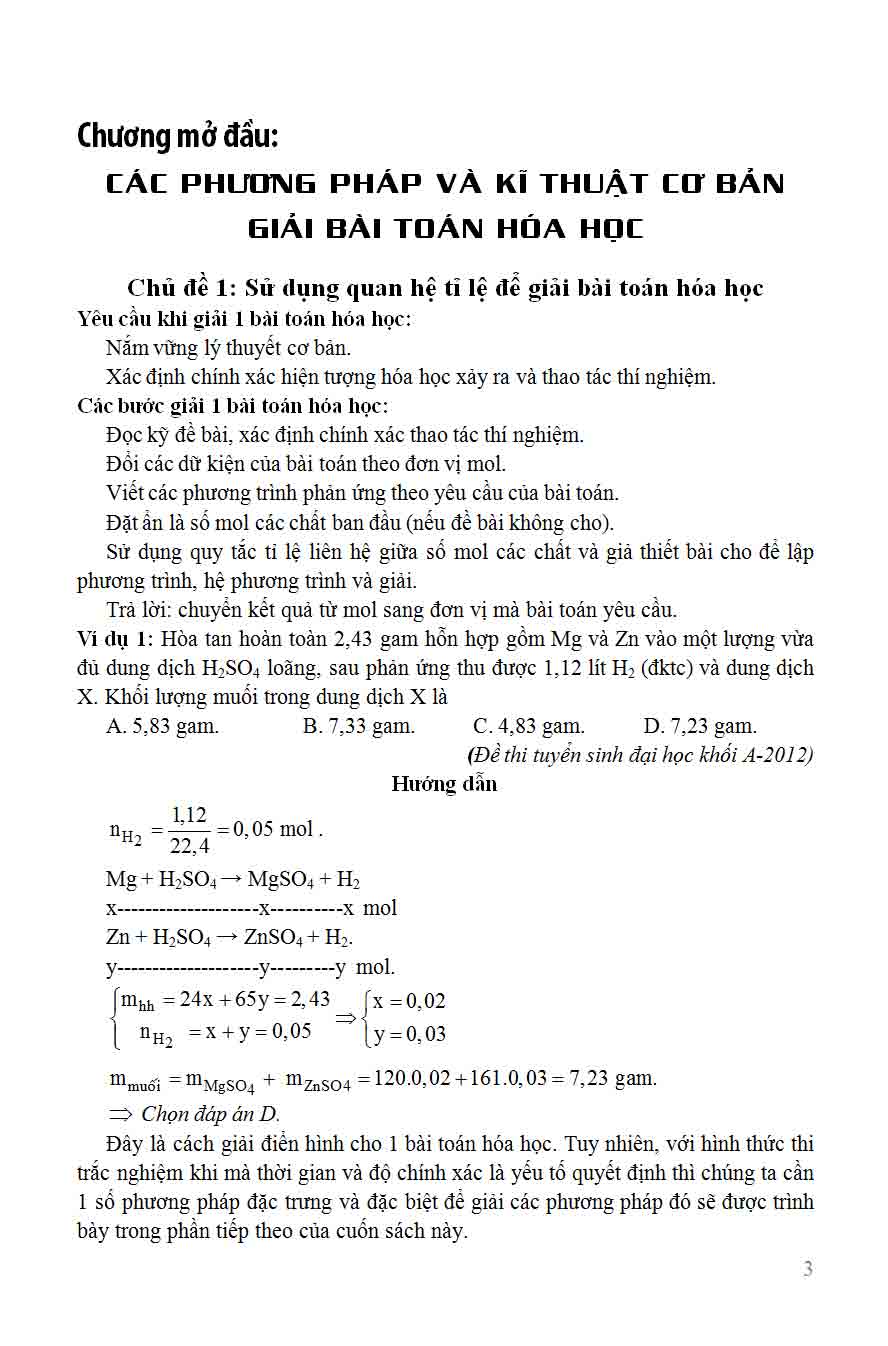 - Chương mở đầu cung cấp những phương pháp, kĩ thuật cơ bản nhất cần trang bị để giải bài toán hóa học. Trong phần này cũng đưa ra các kinh nghiệm, các “mẹo” và thủ thuật làm bài thi trắc nghiệm cũng như kĩ năng sử dụng thuật toán SOLVE của máy tính C.A.S.I.O để bấm nhanh các biểu thức phức tạp…