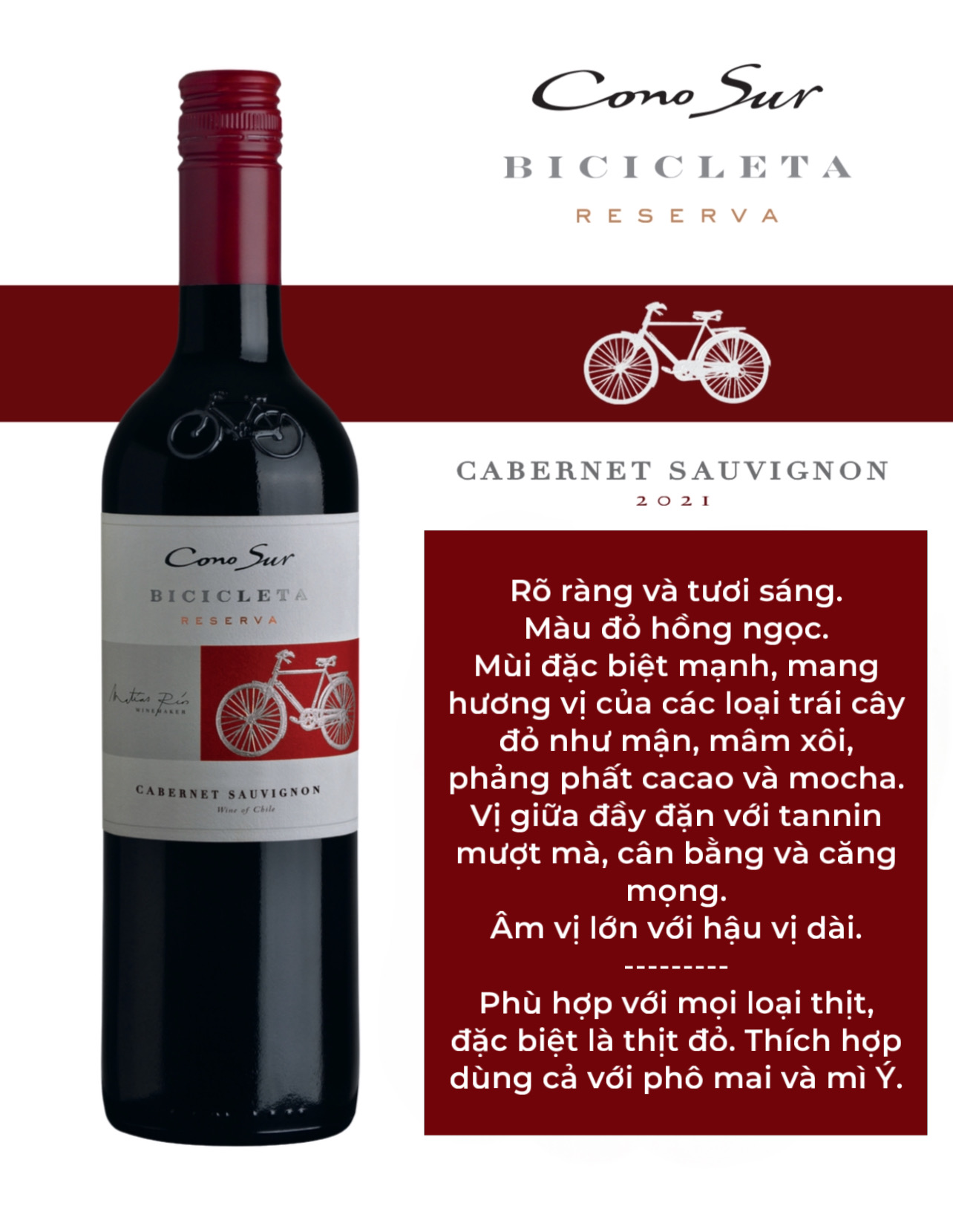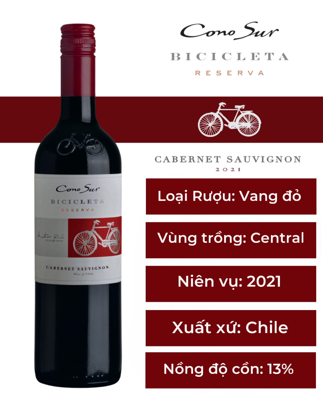 Xuất xứ: Chi Lê Màu ruby đỏ thẫm, đậm đà hương vị trái cây đỏ chín mọng, mận và hương thuốc lá. Vị giác sẽ được khám phá hương vị trái mâm xôi hòa cùng hương caramel phảng phất. Hậu vị dài và thân thiện Dung tích: 750Ml V0L: 13,5% Trái cây chín mọng, thuốc lá, mâm xôi, Caramel....