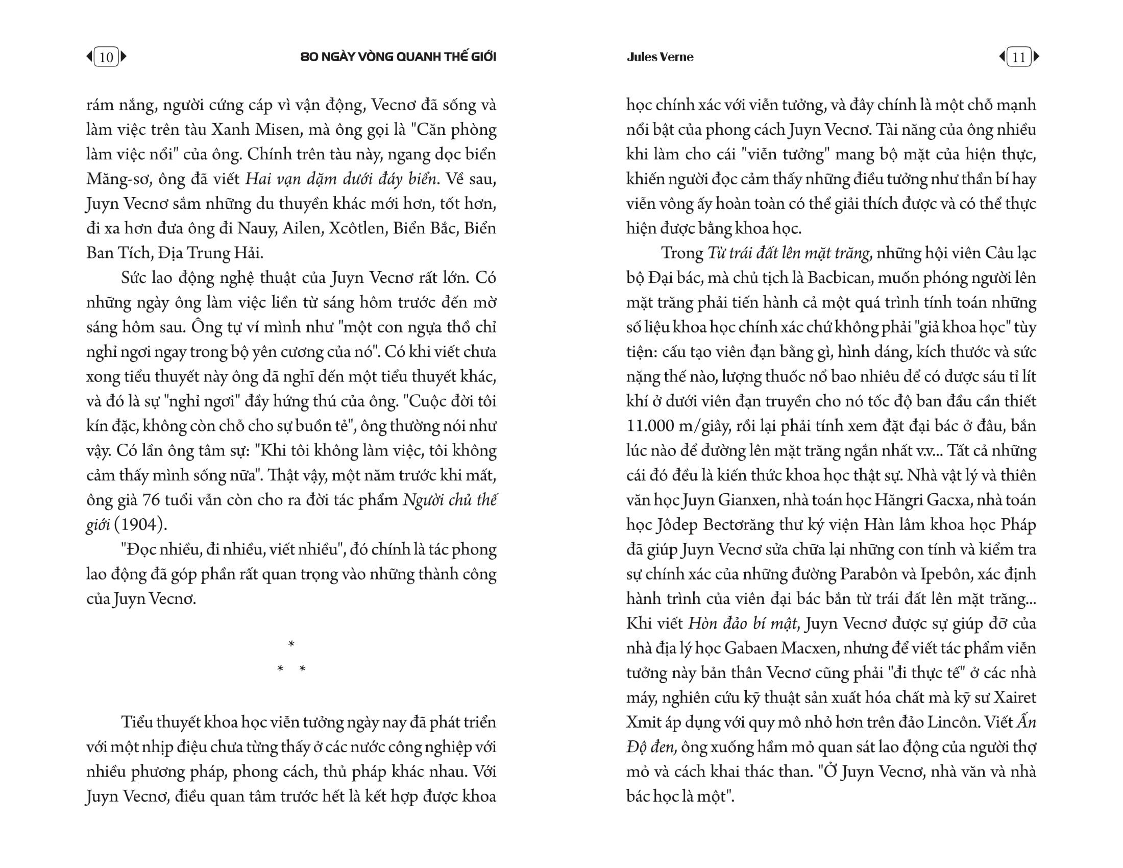 Jules Gabriel Verne (1828 - 1905), là nhà văn Pháp nổi tiếng, được coi là một trong những người “Cha đẻ” của thể loại Văn Học Khoa học viễn tưởng. Ở Jules Verne, nhà văn và nhà bác học chỉ là một. Ông có kiến thức sâu rộng, có óc tưởng tượng vô cùng phong phú, có nhiều tư tưởng tiến bộ và là một tấm gương lao động sáng ngời. Ông đã để lại một di sản NXB Văn Học – khoa học lớn cả về số lượng và chất lượng: Từ trái đất lên mặt trăng (1865), Những đứa con của thuyền trưởng Grăng (1867), Hai vạn dặm dưới đáy biển (1869), Vòng quanh thế giới trong 80 ngày (1873)…