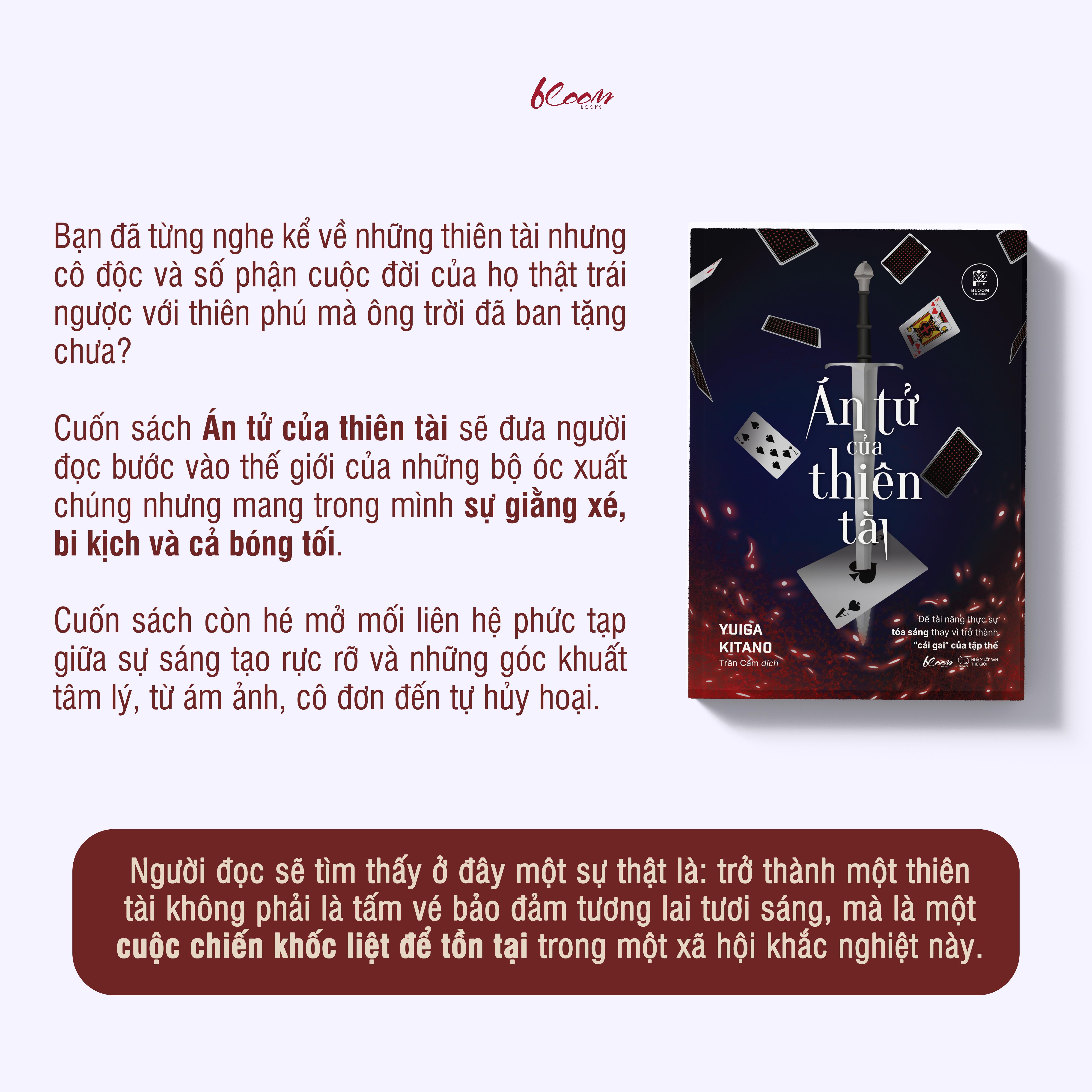 Bằng lối kể chuyện độc đáo, thú vị và khác biệt với các sách kỹ năng trên thị trường, Án tử của thiên tài giải mã những câu hỏi trong hành trình khám phá tài năng của ba kiểu người: thiên tài, người xuất sắc và người bình thường. Từ đó bóc tách những khái niệm, vai trò của từng nhân vật, giúp bạn nhận diện tài năng tiềm ẩn bên trong m.ình, biết cách tận dụng thời điểm phát huy và hiểu cơ chế vận hành của tập thể, để dù ở môi trường nào, bạn cũng có thể tỏa sáng và khẳng định giá trị của m.ình.