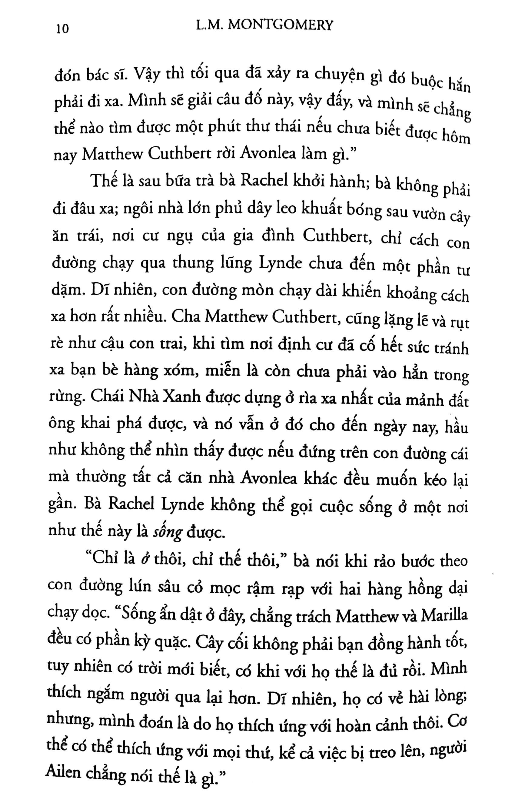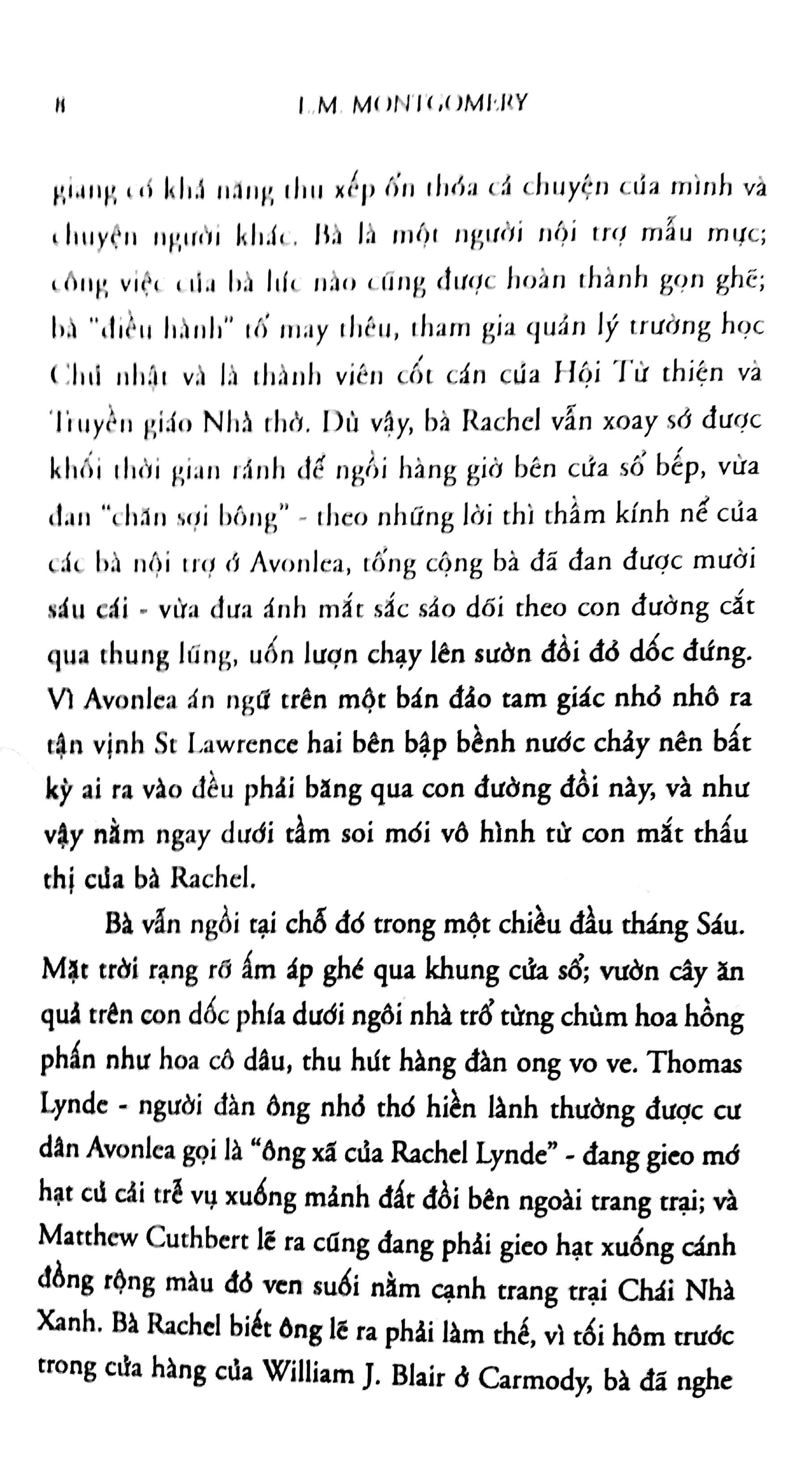 Anne, tóc đỏ, hay gây gổ và lãng mạn vô phương cứu chữa - cô đã xáo trộn cả Green Gable lẫn ngôi làng quanh đó. Nhưng sự hóm hỉnh và thiện tính trong cô lại khiến cô được yêu mến không ngớt, không chỉ với cộng đồng tưởng tượng của Đảo Hoàng tử Edward, mà còn với bao thế hệ độc giả khắp bên kia bờ Đại Tây Dương, suốt một thế kỷ nay, kể từ ngày cuốn Anne Tóc đỏ đầu tiên ra đời năm 1908.