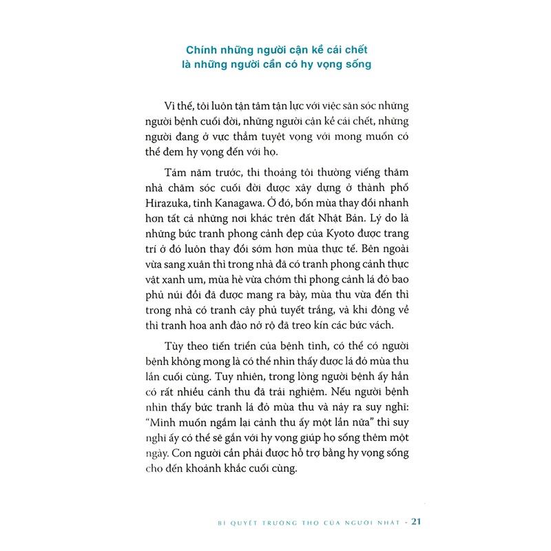 Vậy theo bạn thì thế nào là trường thọ? Nhiều người sẽ trả lời đó là những con số, như sống đến 100 tuổi chính là trường thọ. Thực ra chúng ta vốn luôn chạy theo những tiêu chuẩn mà không nhận ra “tiêu chuẩn không mang tính tuyệt đối”. Bằng những tiến bộ về y học như hiện nay thì tuổi thọ con người ngày càng được kéo dài. Cố bác sĩ Shigeaki Hinohara – huyền thoại y học Nhật Bản, đã viết: “Tôi cho rằng lấy ranh giới tuổi 70 để định nghĩa về người cao tuổi như hiện nay sẽ trở thành 75 tuổi vào thời điểm 20 năm sau”.