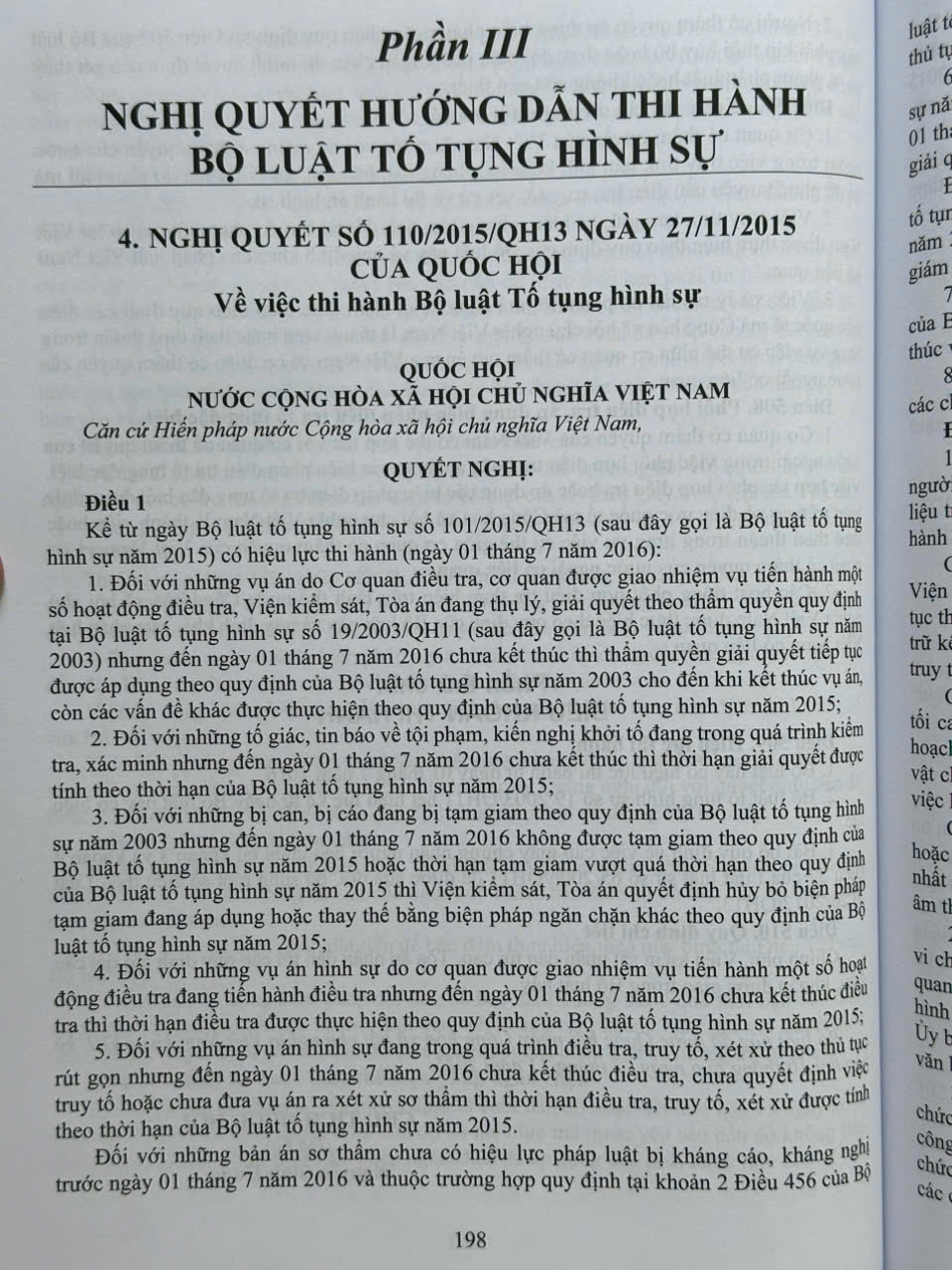 Bình Luận Khoa Học Bộ Luật Tố Tụng Hình Sự Năm 2015 (Tái Bản) Bộ luật tố tụng hình sự 2015 được Quốc hội thông qua ngày 27-11-2015, có hiệu lực từ ngày 1-1-2018. Việc