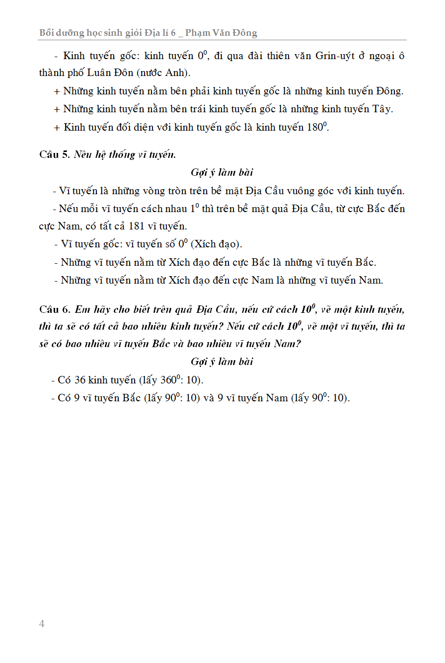 Bồi Dưỡng Học Sinh Giỏi Địa Lí 6 được biên soạn dựa trên kinh nghiệm đúc kết từ các đề thi học sinh giỏi trong nhiều năm qua.