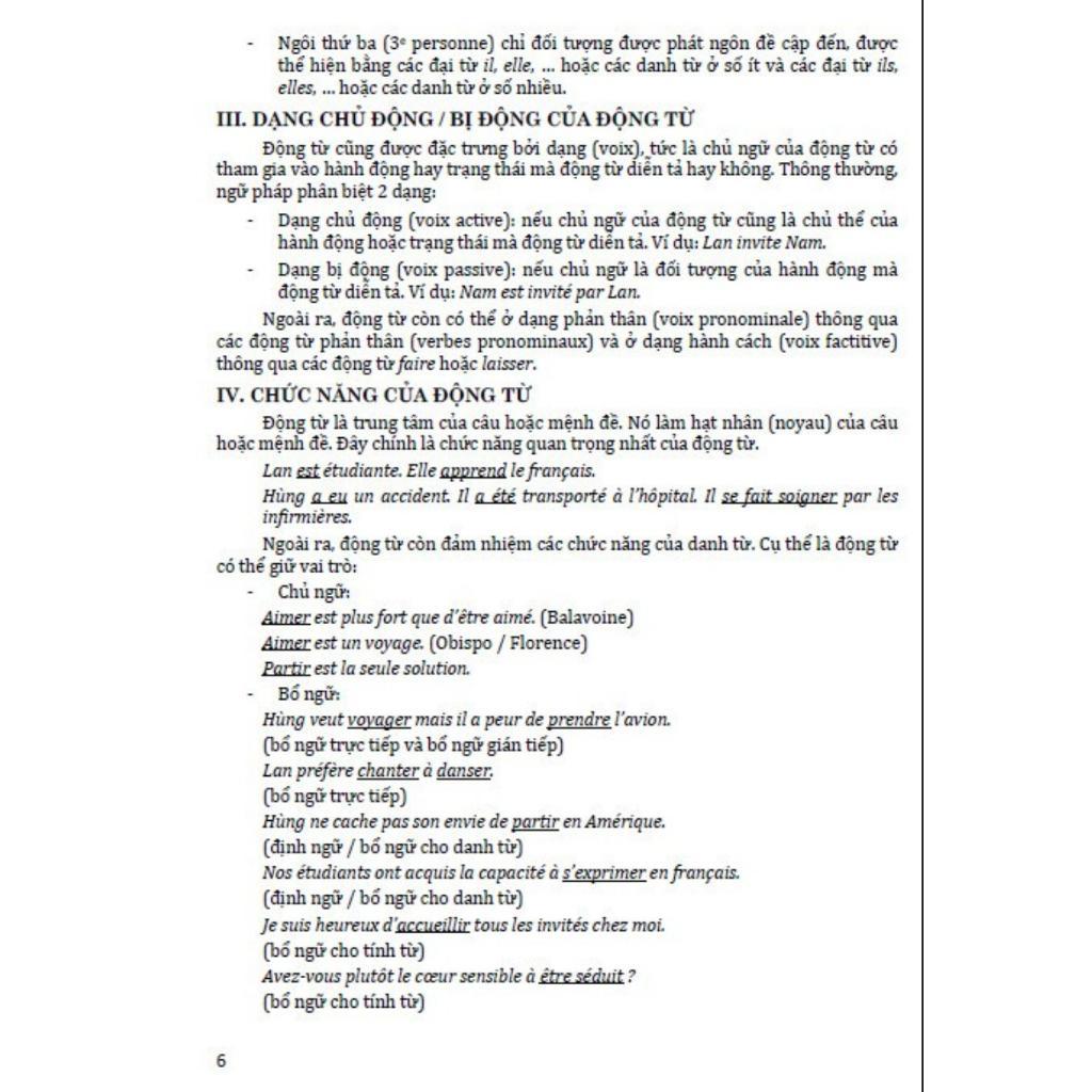 Cuối cùng, người học có thể tham khảo các bảng chia động từ mẫu theo các thì khác nhau thuộc các thức trong tiếng Pháp, để từ đó áp dụng chia các động từ theo nhu cầu diễn đạt của mình. Các tác giả hy vọng cuốn sách này sẽ là một công cụ hữu ích giúp Quí vị học tiếng Pháp một cách hiệu quả.