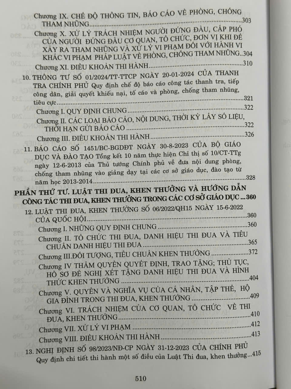 Phần thứ tư. Luật Thi đua, khen thưởng và hướng dẫn công tác thi đua, khen thưởng trong các cơ sở giáo dục