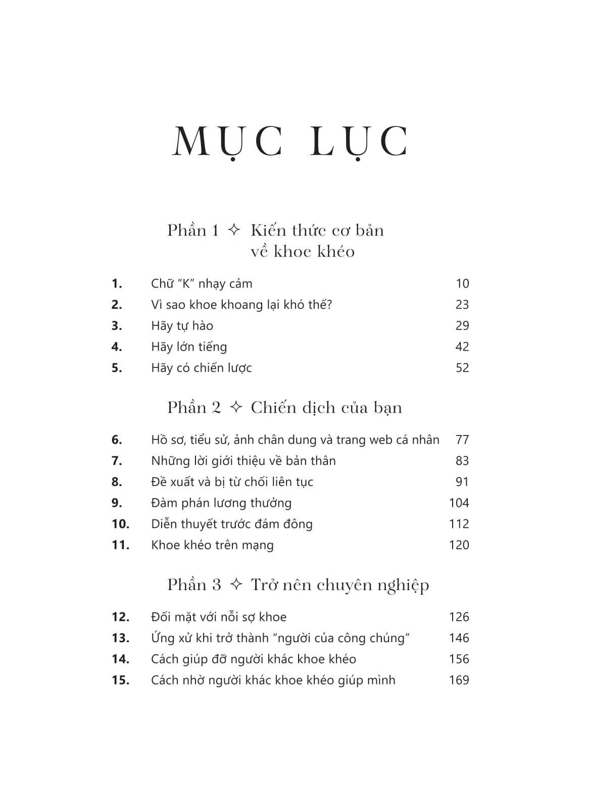 Với hàng chục năm kinh nghiệm trong việc tư vấn chiến lược quảng bá bản thân và thương hiệu, hệ thống tư duy và các bài thực hành của Meredith Fineman trong Cẩm nang “khoe khéo” sẽ giúp bạn nắm được 3 nguyên tắc cơ bản: Tự hào – Lên tiếng – Có chiến lược để “khoe ra” những gì bạn có thể làm tốt mà không khiến người khác cảm thấy bị đe dọa. Không nói quá, mà nói đúng – đúng thời điểm, đúng trọng tâm, và đúng người.