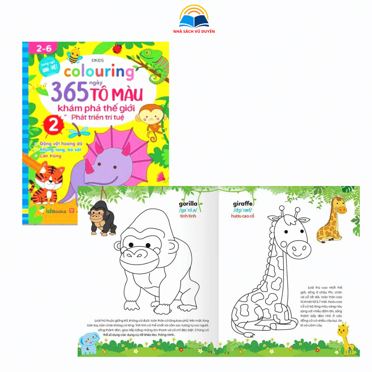 Sách - Colouring 365 Ngày Tô Màu Khám Phá Thế Giới Phát Triển Trí Tuệ (Song Ngữ Anh - Việt) - Dành Cho Bé 2-6 Tuổi