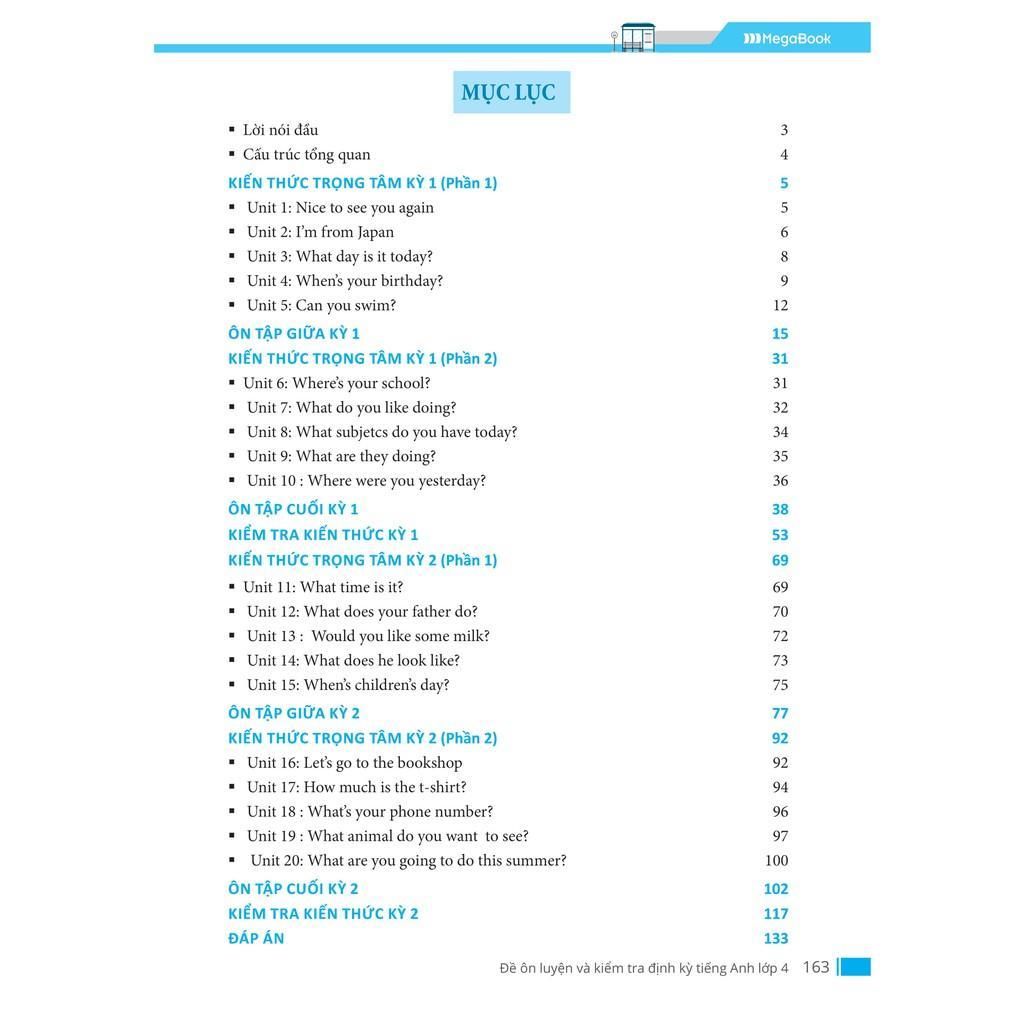 Với những ưu điểm trên, Đề ôn luyện và kiểm tra định kỳ tiếng Anh lớp 4 sẽ là cuốn sách bổ ích, hỗ trợ đắc lực cho học sinh lớp 4 trên con đường chinh phục tiếng Anh, cả về kiến thức Ngữ pháp và luyện tập thực hành. Từ đó, các con được hình thành phản xạ ngôn ngữ và tự tin sử dụng tiếng Anh trong đời sống!