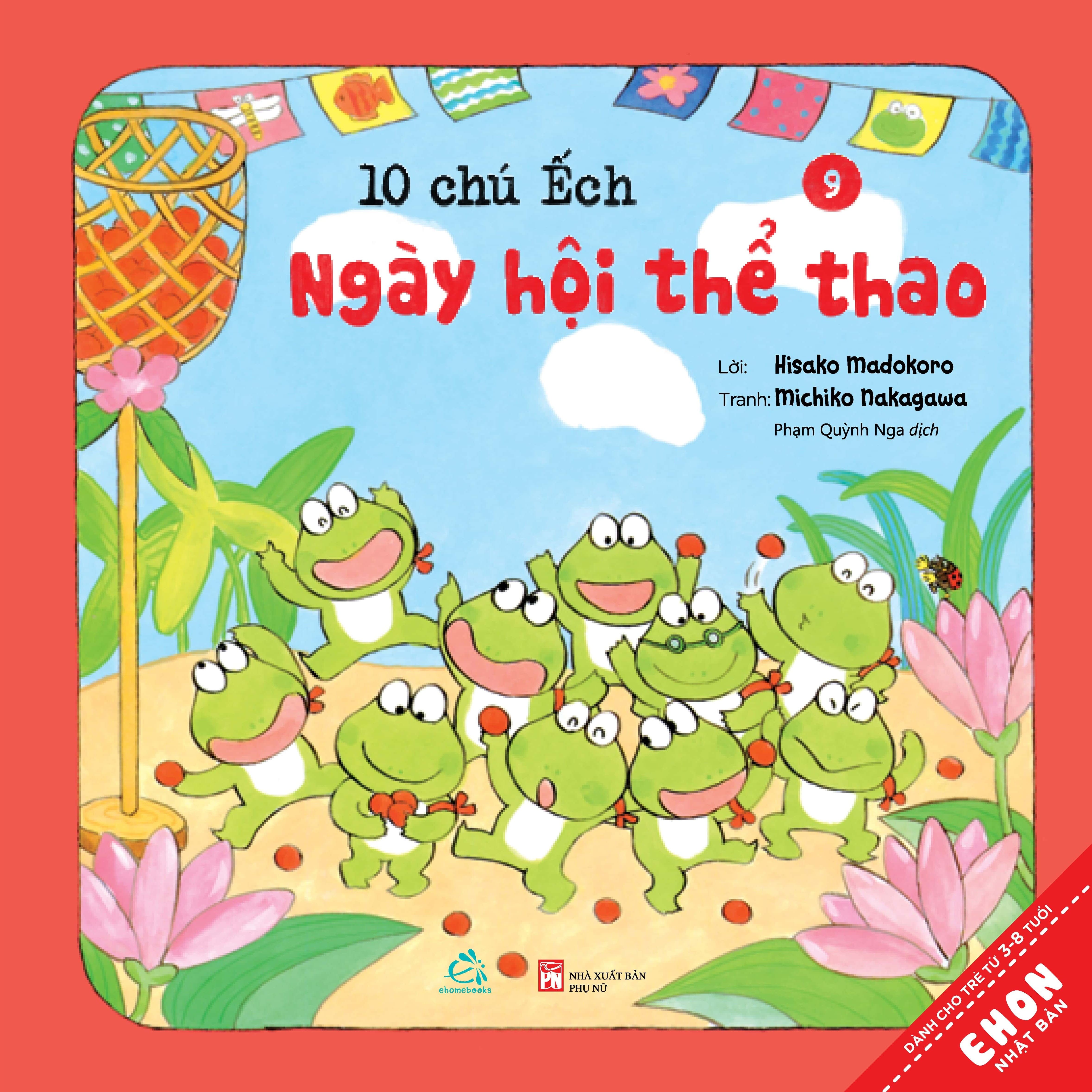 Tên Nhà Cung Cấp Quảng Văn Tác giả: Michiko Nakagawa Người Dịch Phạm Quỳnh Nga NXB Phụ Nữ Năm xuất bản: 2020 Trọng lượng (gr) 900 Kích thước 20 x 20 Số trang 198 Hình thức Bìa Mềm GIỚI THIỆU SÁCH Series Ehon Nhật Bản - 10 Chú Ếch gồm 10 truyện khác nhau xoay quanh những câu chuyện thú vị về 10 chú ếch tinh nghịch, đáng yêu với những tình huống trong cuộc sống hàng ngày. Đây được coi là một trong những bộ truyện Ehon Nhật Bản hay nhất về chủ đề động vật. Với tạo hình chú ếch ngộ nghĩnh, màu sắc truyện tươi sáng, đẹp mắt, cùng với những tình huống gần gũi trong cuộc sống hàng ngày về tình cảm trong gia đình, lòng dũng cảm vượt qua khó khăn, tình đoàn kết, sự tự tin thể hiện bản thân…ắc chắn sẽ đem tới cho các em nhỏ những câu chuyện vô cùng thú vị. Bộ sách bao gồm 6 cuốn: - Cuộc thi hát hay - Mùa xuân đến rồi! - Ngày hội thể thao - Lễ hội sao vui vẻ - Tới núi Rào Rào - Cùng tới biển chơi