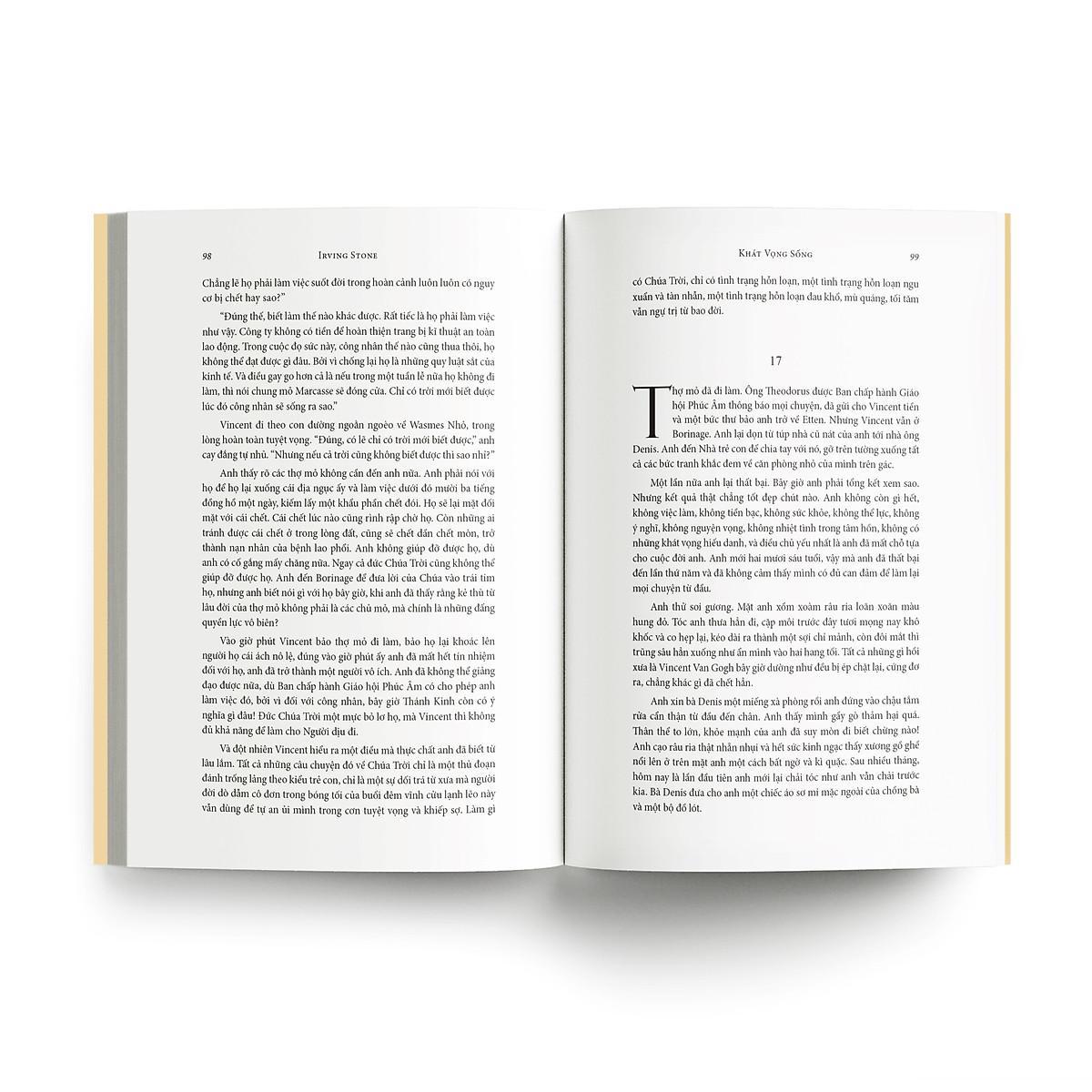 Thuật lại quãng đời ngắn ngủi nhưng rực cháy đam mê của Van Gogh, Khát vọng sống được xem là tiểu thuyết tiểu sử thành công nhất về cuộc đời các danh nhân. Tác giả của nó, Irving Stone, vốn là nhà viết kịch, khi lần đầu xem tranh của Van Gogh tại Paris đã gặp phải một trải nghiệm chưa từng có và quyết định viết một cuốn sách về danh họa này “nếu không, sẽ chẳng viết gì khác”. Để thực hiện mong muốn, Stone quay về New York viết báo và dành dụm nhuận bút để lần theo dấu chân của người họa sĩ qua các vùng đất tại Anh, Hà Lan, Bỉ, Pháp, gặp gỡ nhiều người và nghiên cứu hơn 650 thư từ giữa Van Gogh và người em, Theo Van Gogh. Năm 1934, tác phẩm ra đời và lập tức lọt vào danh sách bán chạy. Gây xúc động sâu sắc bởi nỗi cô đơn cùng cực, những khát vọng cùng cực với nghệ thuật, tình yêu và cuộc sống, tác phẩm đã góp phần làm nên danh tiếng bất tử của Van Gogh, người bấy giờ vẫn còn ít được biết đến tại Hoa Kỳ cũng như trên thế giới.