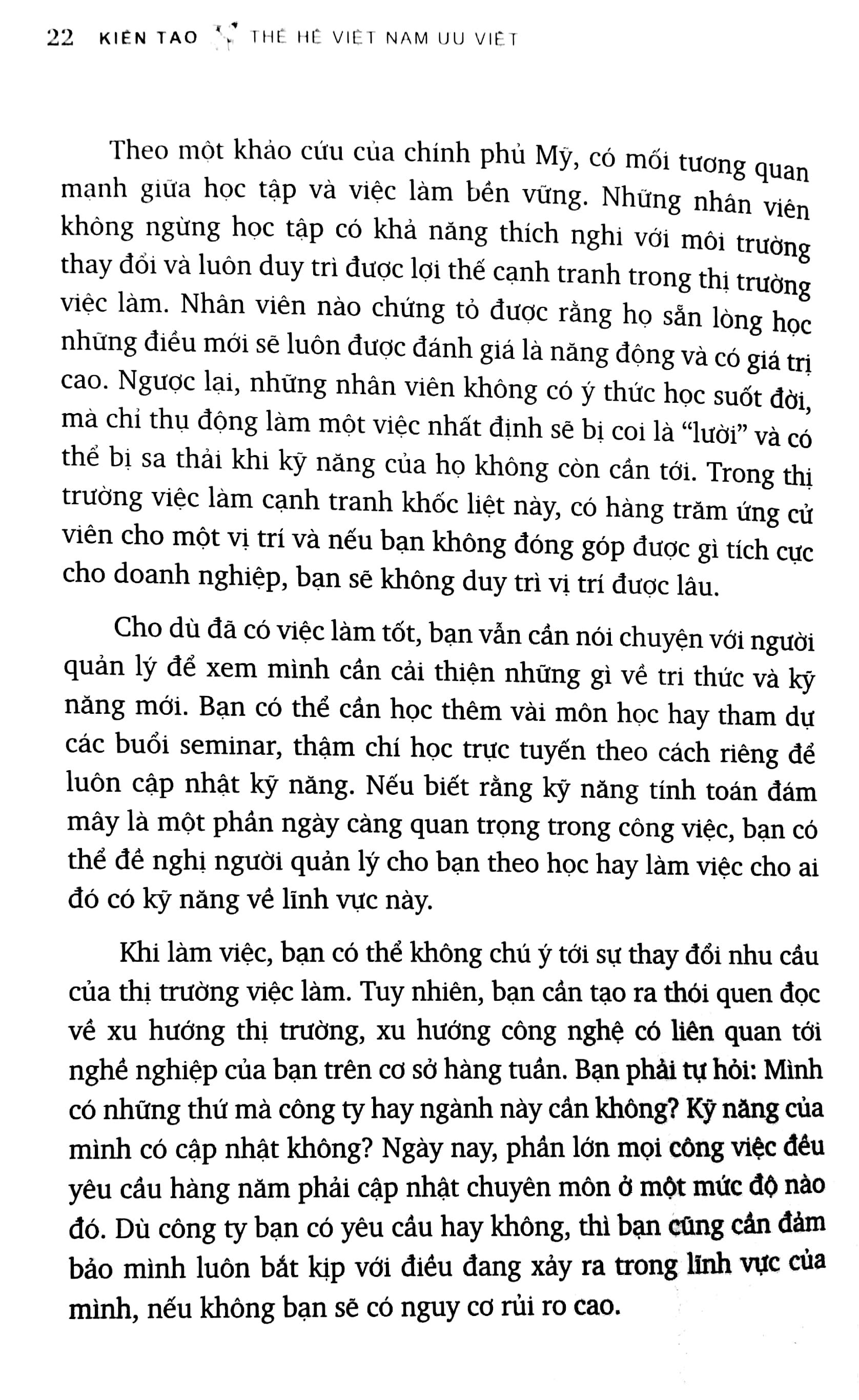 Để trở thành một người thành công trong công việc và trong cuộc sống, bản thân mỗi người trẻ không chỉ biết trang bị cho mình những kiến thức được học trên lớp, mà một điều vô cùng quan trọng đó là trau dồi những kĩ năng mềm cần thiết. Nó chính là cách thức để áp dụng những kiến thức bạn học được trong công việc và cuộc sống đó chính là những gì cuốn sách “Kiến tạo thế hệ Việt Nam ưu Việt” muốn gửi đến các bạn.