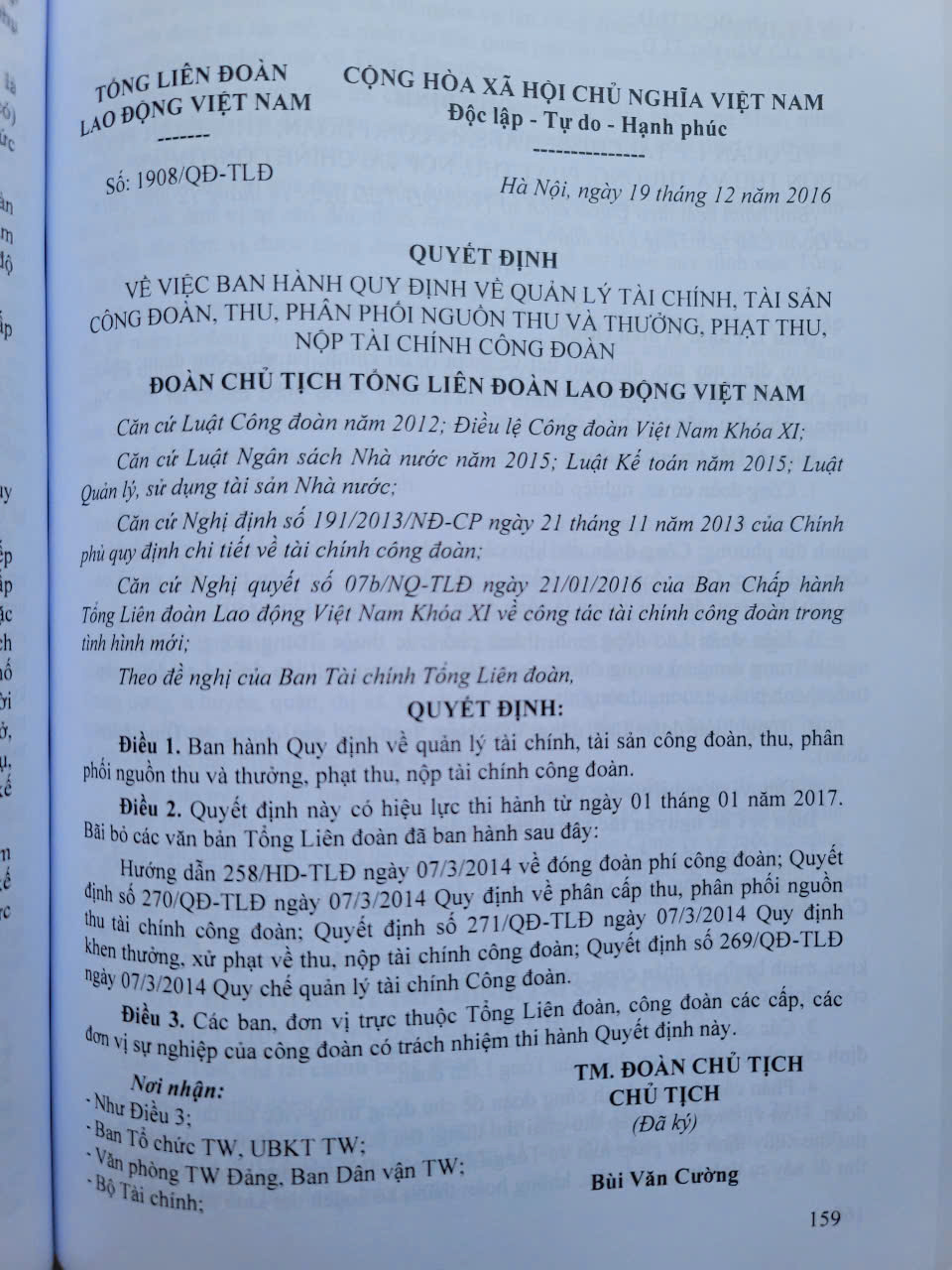 Phần thứ ba. NHỮNG QUY ĐỊNH VỀ TIÊU CHUẨN, CHẾ ĐỘ CHI TIÊU VÀ QUẢN LÝ TÀI CHÍNH, TÀI SẢN TRONG CÔNG ĐOÀN