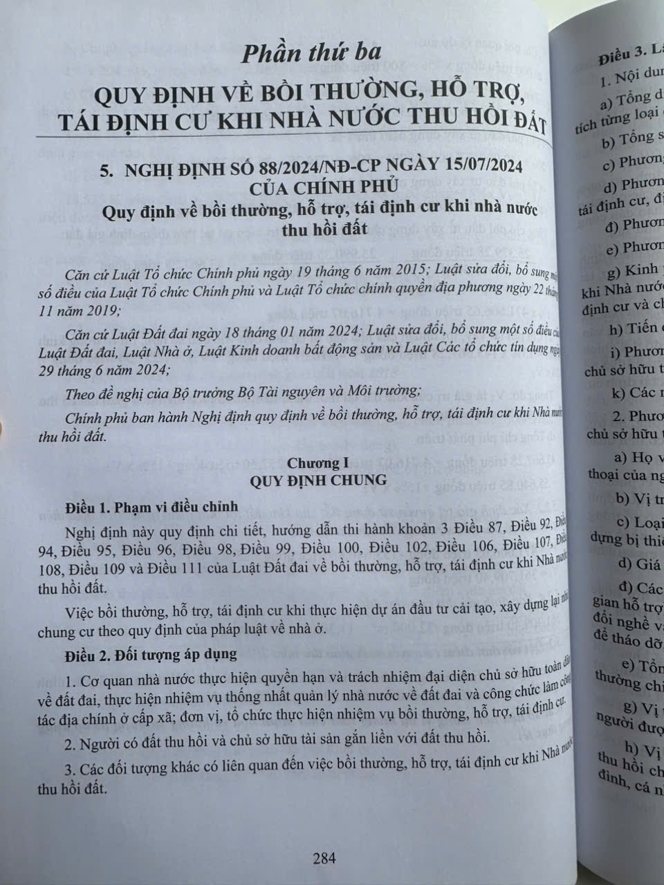 – Nghị định số 88/2024/NĐ-CP ngày 15/7/2024 Quy định về bồi thường, hỗ trợ, tái định cư khi nahf nước thu hồi đất