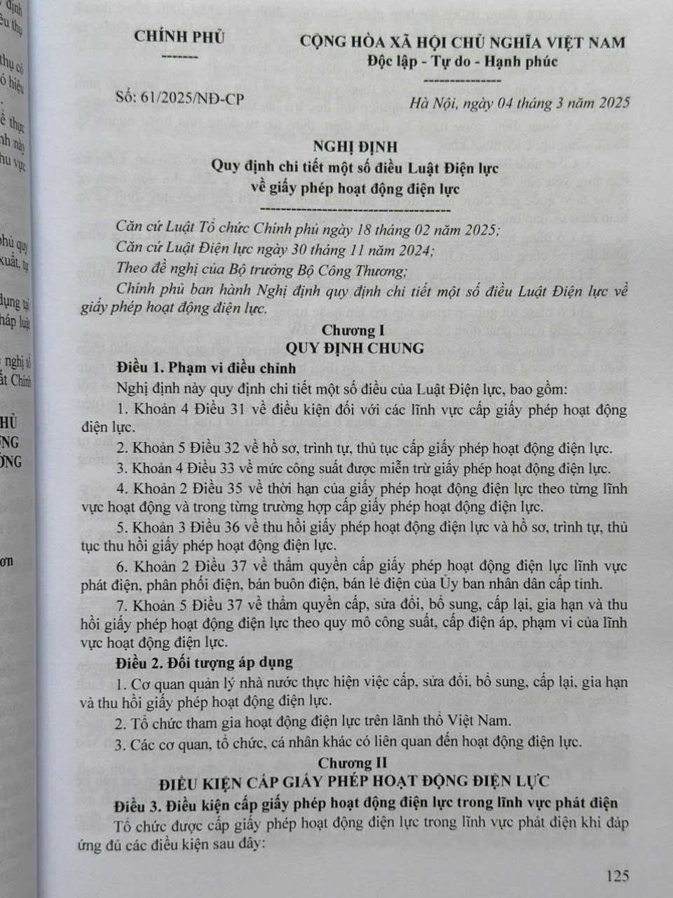 – Nghị định số 62/2025/NĐ-CP ngày 04 tháng 3 năm 2025 của Chính phủ quy định chi tiết thi hành Luật Điện lực về bảo vệ công trình điện lực và an toàn trong lĩnh vực điện lực…