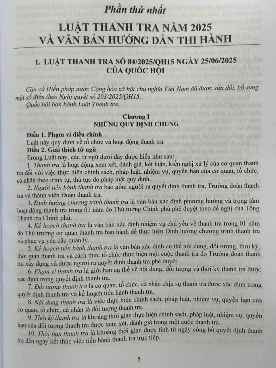 Phần thứ nhất. LUẬT THANH TRA năm 2025 VÀ VĂN BẢN HƯỚNG DẪN THI HÀNH