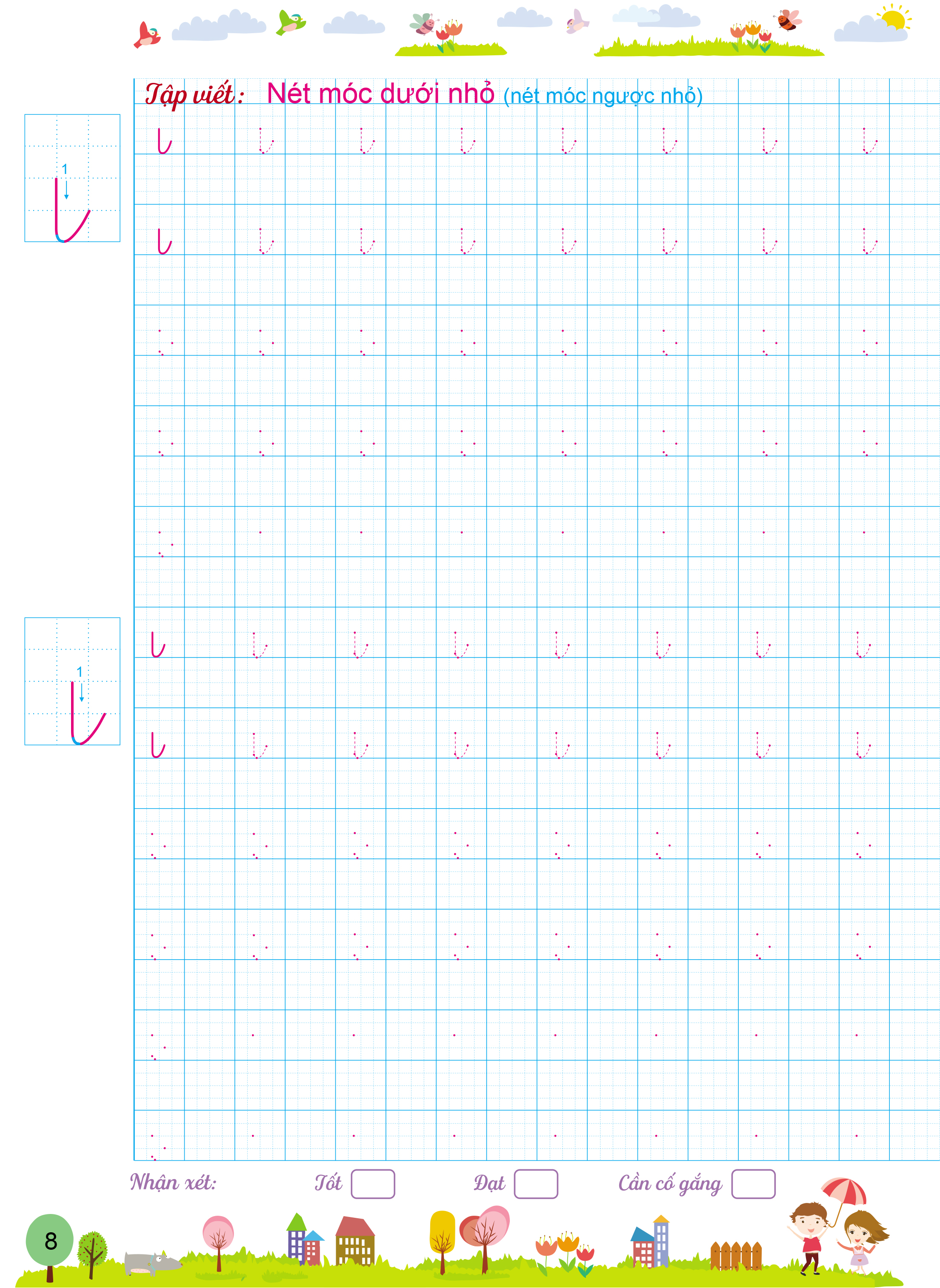 Sách Luyện Viết - Hành Trang Cho Bé Tự Tin Vào Lớp 1 GIỚI THIỆU SẢN PHẨM: Tâm thế cho bé vào lớp 1 – Luyện viết, quyển 1 - 2 -3 Dành cho trẻ 5-6 tuổi chuẩn bị vào lớp 1. Trọn bộ 3 quyển: Luyện viết quyển 1 – Nét cơ bản & chữ số Luyện viết quyển 2 – 29 Chữ cái & 11 chữ ghép Luyện viết quyển 3 – Từ, tiếng và câu Với bố cục 1 trang tập viết, 1 trang luyện tập, thiết kế từ theo quy trình tập viết đơn giản từ tô chấm mờ, véc tơ đến tập viết theo điểm đặt bút. Bộ vở sẽ là hành trang giúp bé tự tin vững bước vào lớp 1. HƯỚNG DẪN BẢO QUẢN SÁCH THIẾU NHI: