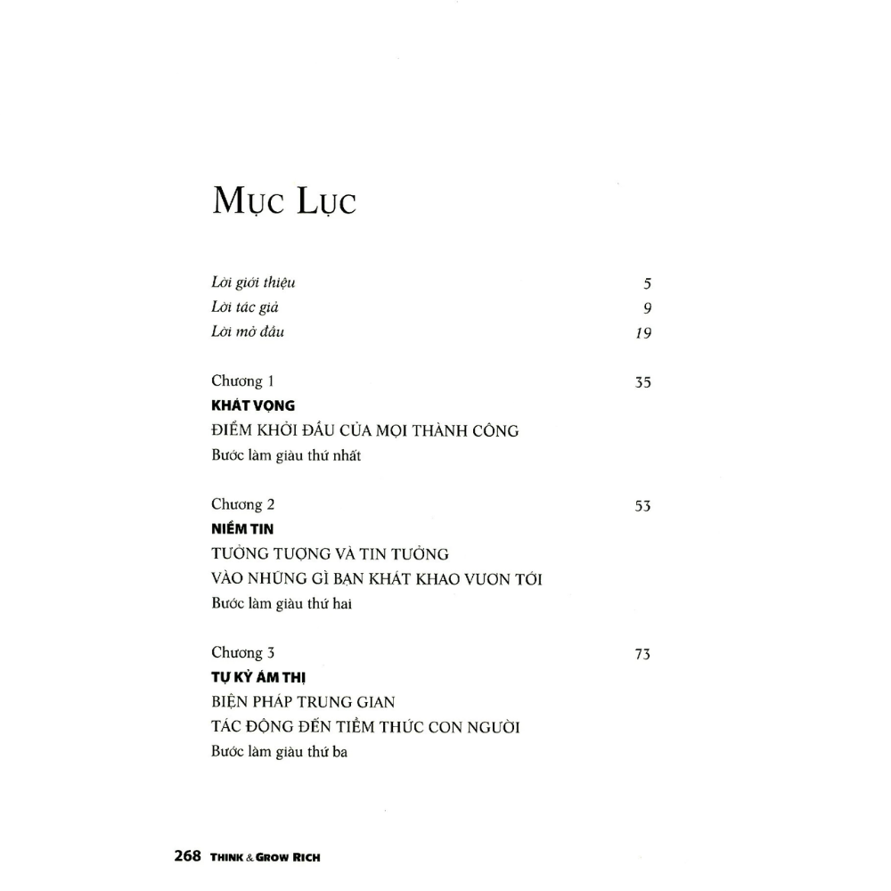 Do đó, cuốn sách này không chỉ thay đổi những điều bạn nghĩ mà còn có thể thay đổi cả cách nghĩ của bạn; không dừng lại ở việc chỉ ra cho bạn thấy bạn phải làm gì mà còn vạch cho bạn biết phải làm điều đó như thế nào để đạt được khát vọng của mình. Ra mắt bạn đọc với phiên bản cao cấp lần này, cuốn sách thay đổi nhiều về hình thức thiết kế bìa cứng, màu nâu đen, chữ vàng ánh kim dập nổi sang trọng, tinh tế.