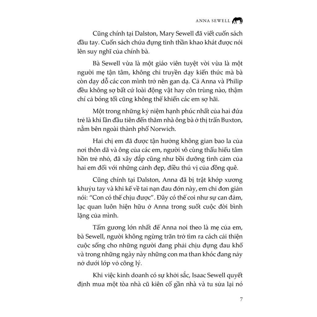 đời. Nhờ công việc của cha tại trạm nuôi ngựa Shoreham mà tình yêu của Anna dành cho loài ngựa dần dần được hình thành và nảy nở. Anna Sewell không hề có ý định trở thành nhà văn.
