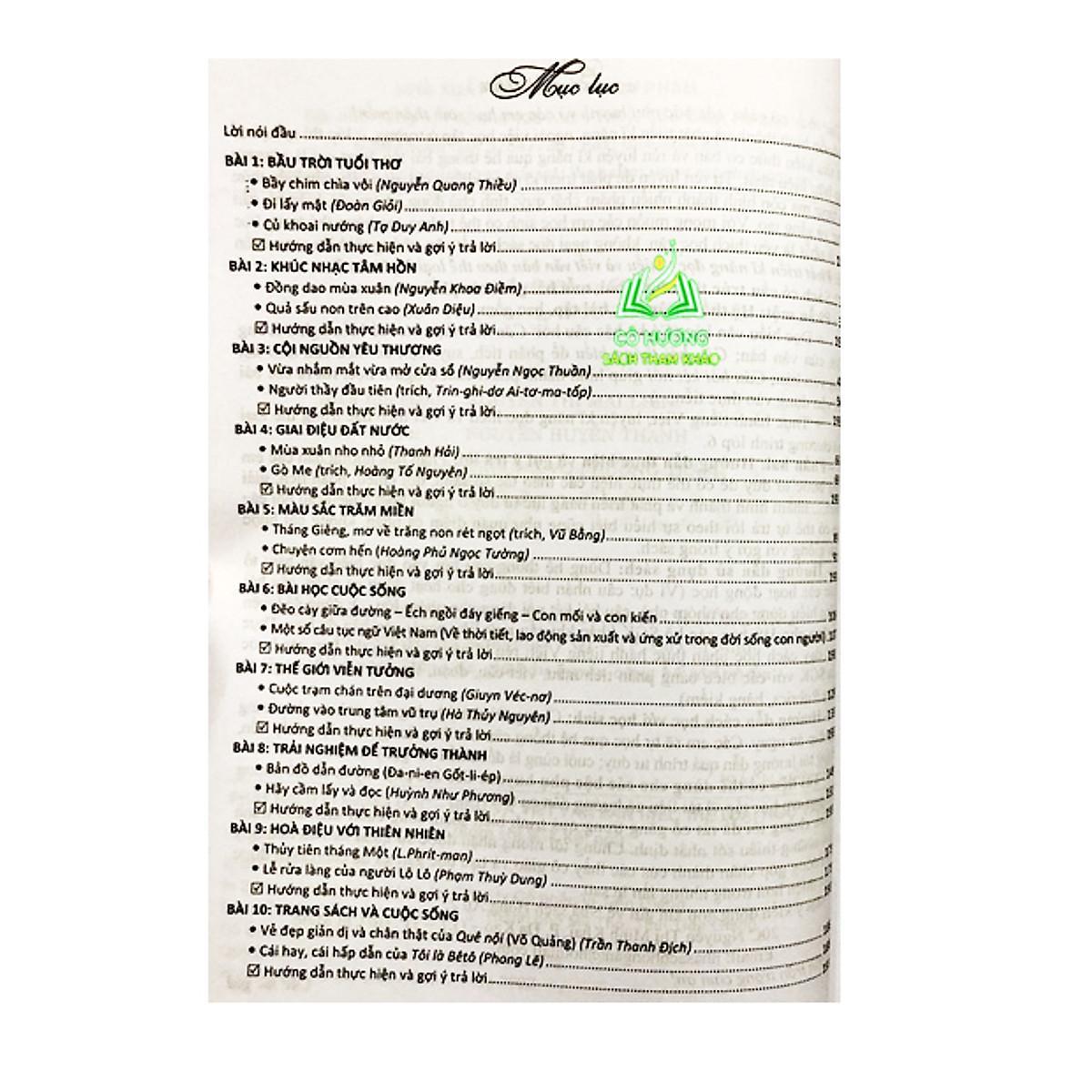 – Phần hai: Hướng dẫn thực hiện và gợi ý trả lời: Phần này hướng dẫn các em từng bước tư duy để có thể thực hiện các thao tác so sánh, đối chiếu, phân tích, giải thích, nhằm hình thành và phát triển năng lực tư duy ở người học. Nhiều câu hỏi các em có thể tự trả lời theo sự hiểu biết cũng như quan điểm cá nhân, không bắt buộc phải giống với gợi ý trong sách.