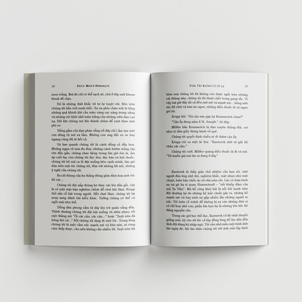 Cho nên khi tất cả đồng đội cùng trang lứa đã ngã xuống, cái chết đối với những chàng trai ấy là sự giải thoát. Họ nằm xuống nhẹ nhangfm thanh than đến độ tưởng như chẳng hề may may lay động đến thứ gì xung quanh, dù chỉ là một ngọn cỏ. Mặt trận hoàn toàn yên tĩnh, bản báo cáo chiến trường chỉ ghi vẻn vẹn một câu: “Ở phía Tây, không có gì lạ.” Phải, chẳng có gì lạ, chỉ có một người vừa rời khỏi cuộc đời khi độ tuổi mới chớm đôi mươi.