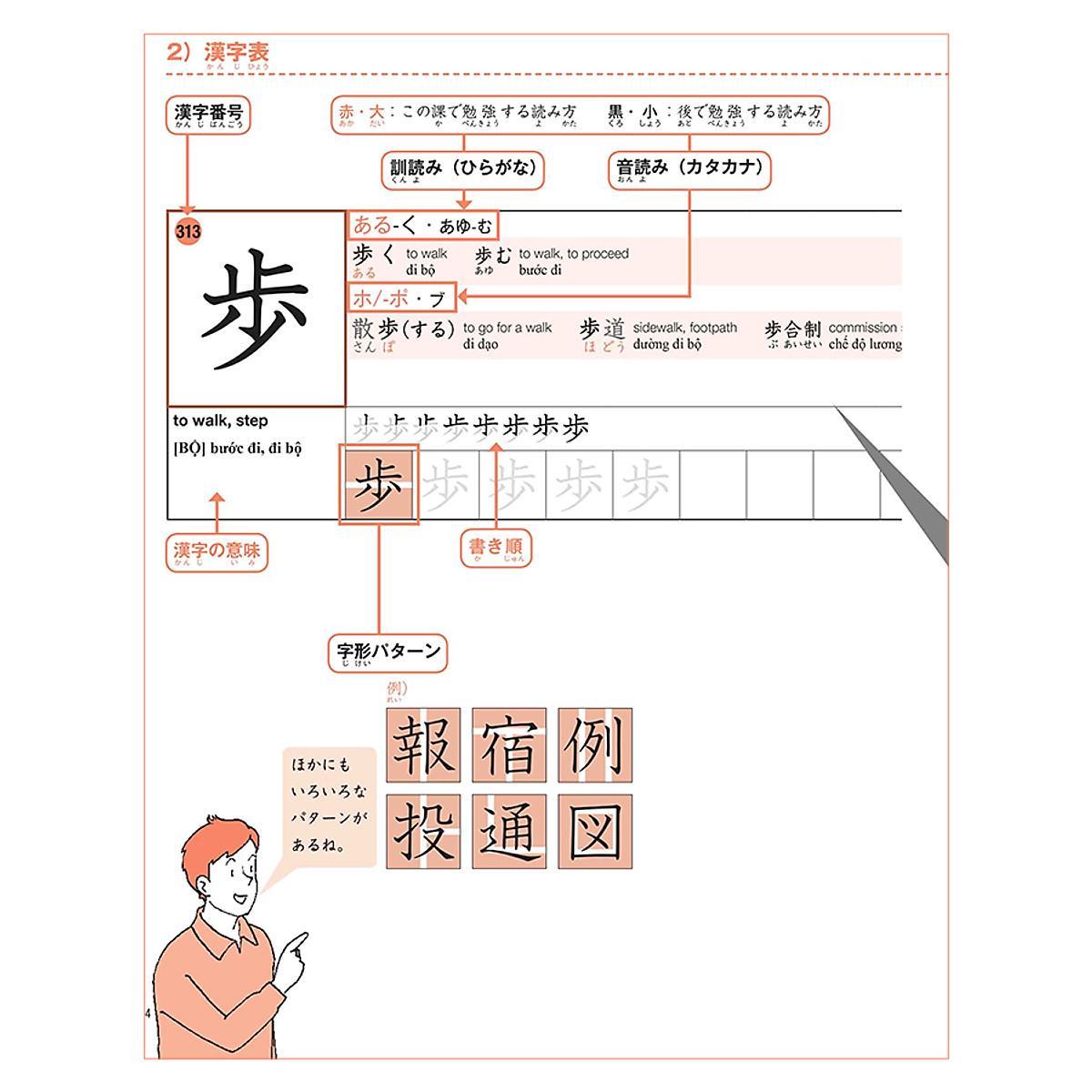 • Các chữ Kanji đã học sẽ xuất hiện nhiều lần trong phần luyện tập của mỗi bài và phần Bài tập tổng hợp để học viên có thể luyện cách đọc và viết các từ vựng.