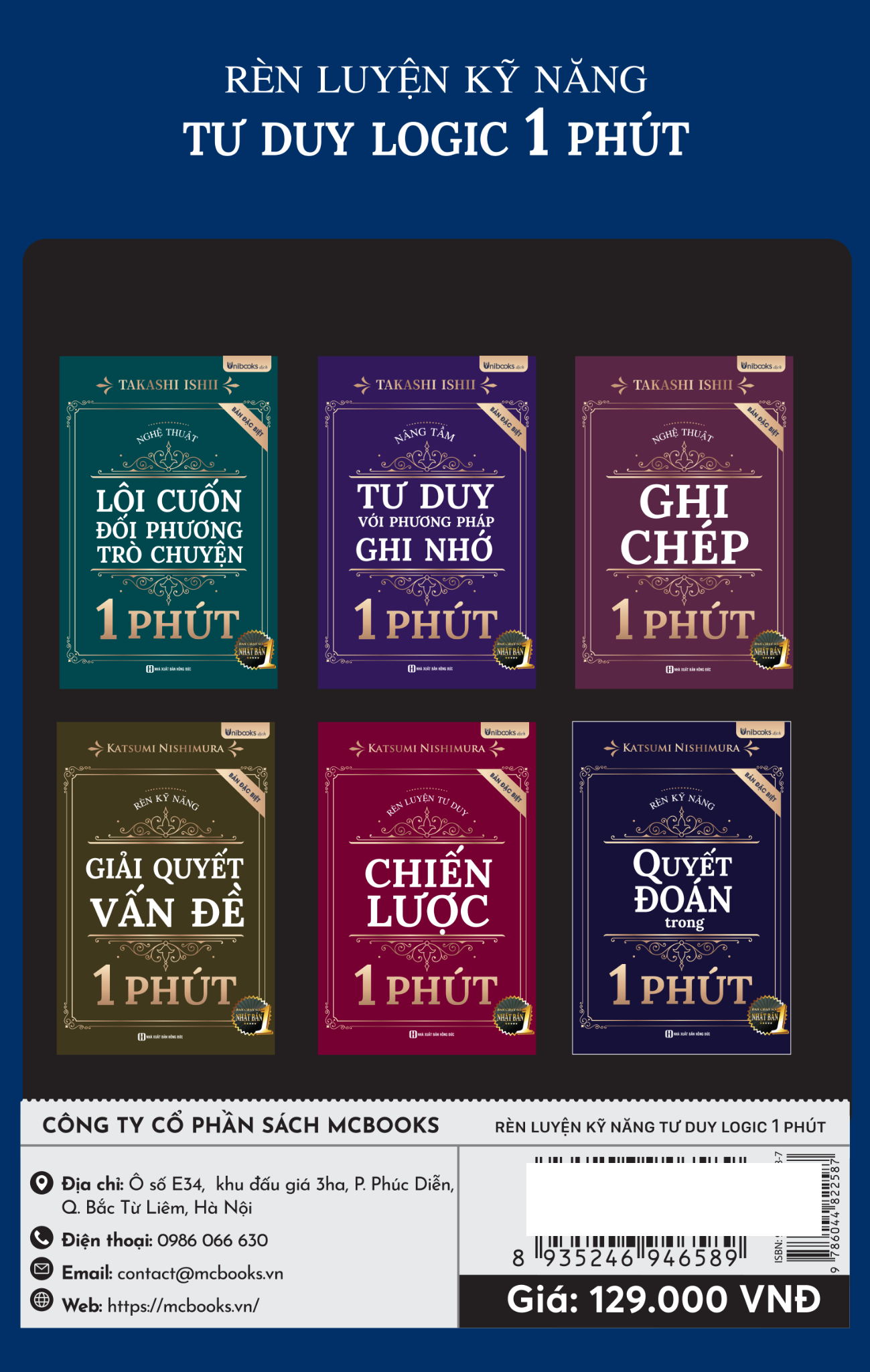 Rèn Luyện Kỹ Năng Tư Duy Logic 1 Phút “Rèn Luyện Kỹ Năng Tư Duy Logic 1 Phút” là cuốn sách hướng dẫn bạn cách suy nghĩ mạch lạc, xử lý thông tin hiệu quả và giải quyết vấn đề nhanh chóng thông qua tư duy logic. Được thiết kế ngắn gọn, trực quan và giàu ví dụ thực tiễn, cuốn sách giúp bạn rèn luyện khả năng phân tích, loại bỏ cảm tính và ra quyết định sáng suốt chỉ trong 1 phút – kỹ năng thiết yếu trong thời đại “thừa thông tin, thiếu tư duy”. Nội dung chính của cuốn sách Cuốn sách gồm nhiều chương nhỏ, mỗi chương là một “viên gạch” xây dựng tư duy logic bền vững, với các nội dung nổi bật:
