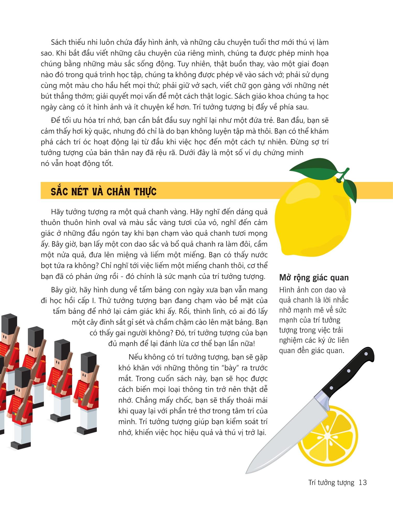 - Hiểu được trí nhớ của bản thân thay đổi như thế nào theo thời gian và bạn có thể làm gì để giữa cho tâm trí luôn khỏe mạnh khi về già Một cuốn sách dành cho mọi lứa tuổi, từ các bạn học sinh sinh viên muốn ghi nhớ kiến thức trên lớp, vượt qua kỳ thi,… cho đến các việc ứng dụng trí nhớ trong công việc hàng ngày, rèn luyện trí nhớ cả khi về già.