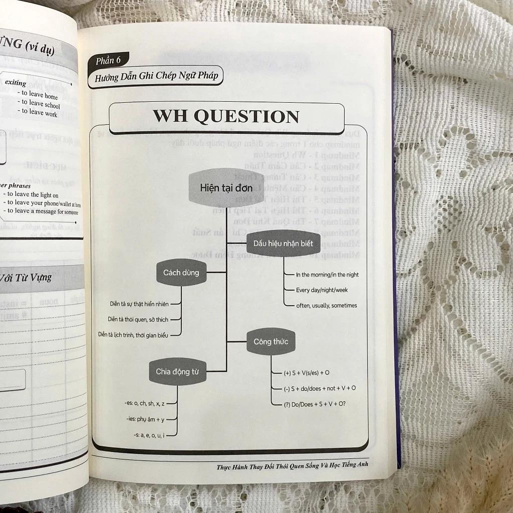 - Ghi chép từ vựng & ngữ pháp thông minh: Sử dụng mindmap, phương pháp 6 bước, hệ thống từ loại – nghĩa – ví dụ – gia đình từ để bạn học sâu, nhớ lâu và có thể ứng dụng thực tế. Vì sao gọi là “vạn năng”? Vì đây không chỉ là sổ học tiếng Anh, mà là cuốn cẩm nang giúp bạn: