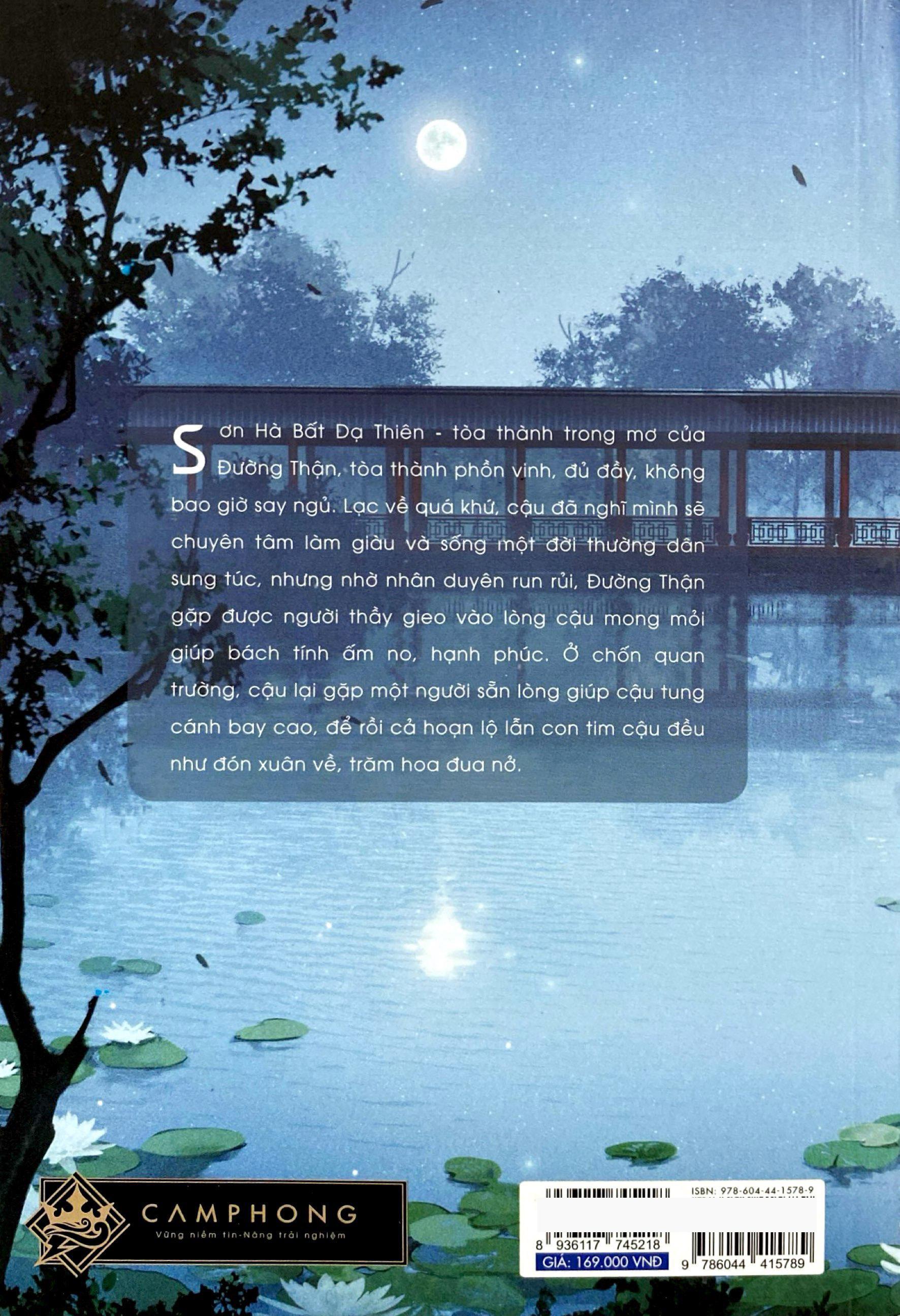 Sơn Hà Bất Dạ Thiên – tòa thành trong mơ của Đường Thận, tòa thành phồn vinh, đủ đầy, không bao giờ say ngủ. Lạc về quá khứ, cậu đã nghĩ m.ình sẽ chuyên tâm làm giàu và sống một đời thường dân sung túc, nhưng nhờ nhân duyên run rủi, Đường Thận gặp được người thầy gieo vào lòng cậu mong mỏi giúp bách tính ấm no, hạnh phúc. Ở chốn quan trường, cậu lại gặp một người sẵn lòng giúp cậu tung cánh bay cao, để rồi cả hoạn lộ lẫn con tim cậu đều như đón xuân về, trăm hoa đua nở.