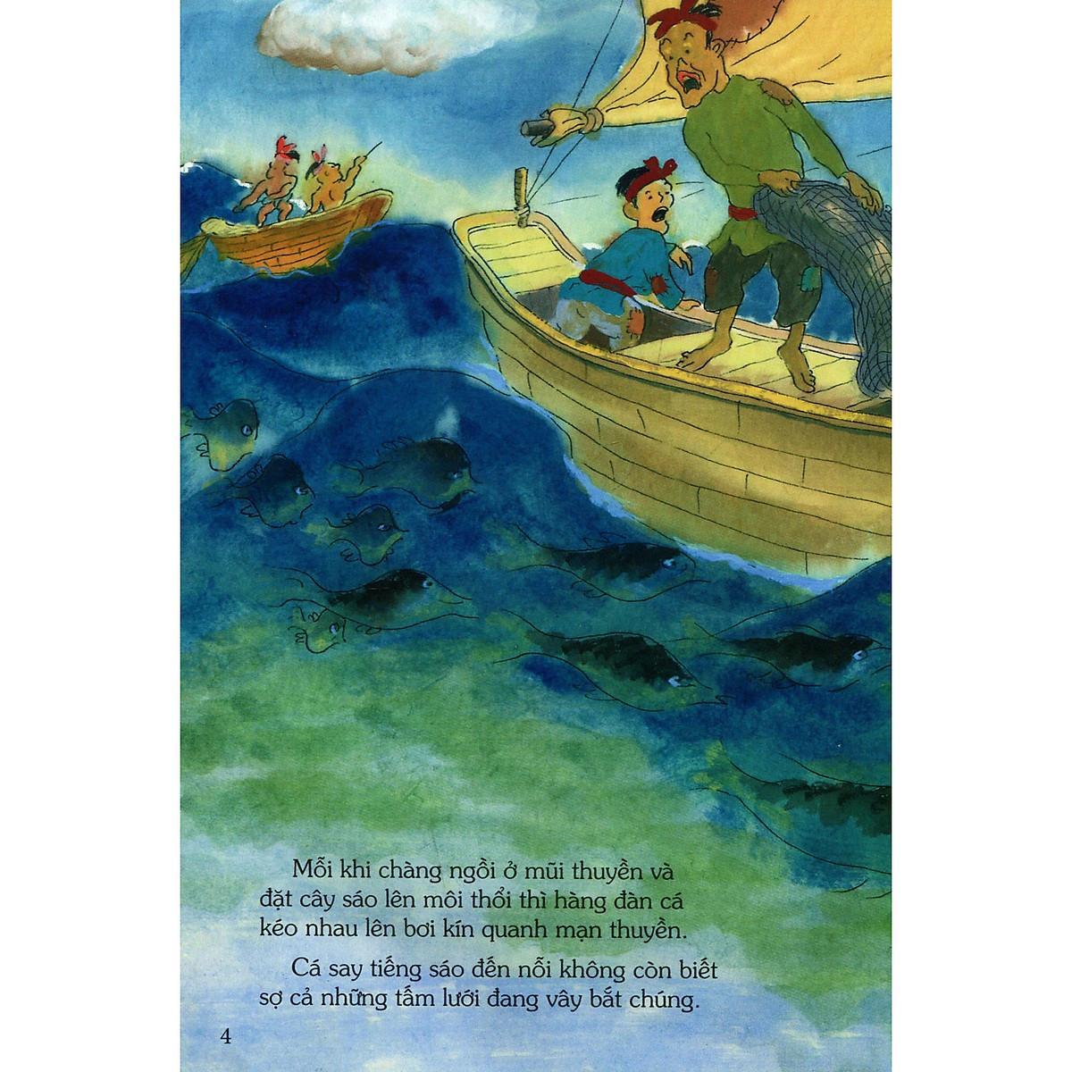 Chàng mồ côi nhờ tiếng sáo du dương của mình đã khiến nàng tiên út nhà Trời cảm mến. Thế rồi họ nên duyên chồng vợ. Nhưng mối duyên giữa kẻ trần người tiên gặp nhiều trắc trở gian nan. Các em cùng đọc câu chuyện cảm động về tình cảm gia đình, đồng thời biết thêm về sự tích núi Vàng ở đất Tam Điệp - Ninh Bình ngày nay.