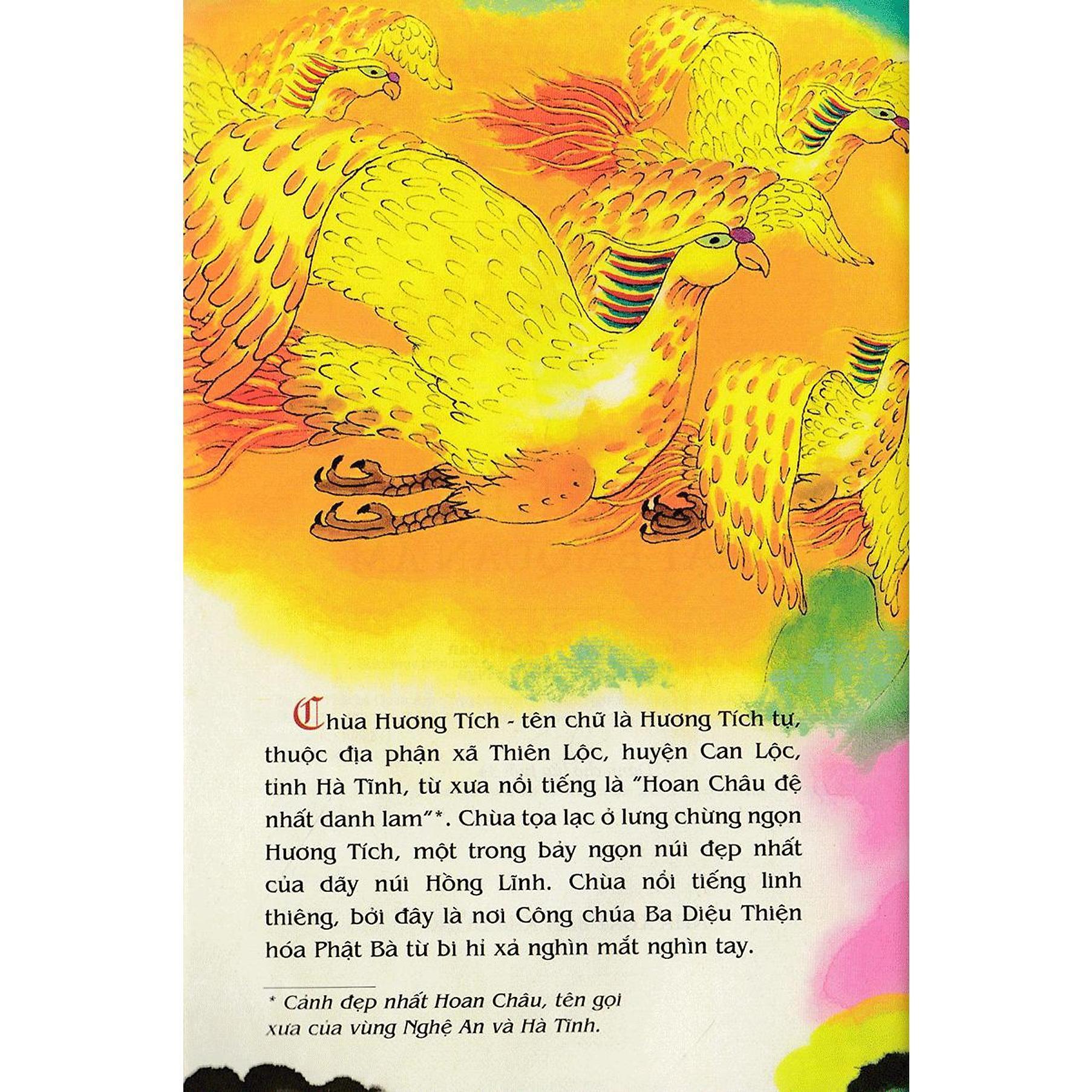 Tranh Truyện Dân Gian Việt Nam: Sự Tích Phật Bà Quan Âm Chùa Hương Tích thuộc địa phận huyện Can Lộc – Hà Tĩnh, từ xa xưa đã nổi tiếng là “Hoan Châu đệ nhất danh lam”. Chùa nổi tiếng linh thiêng bởi đây là nơi Công chúa Ba Diệu Thiện hóa Phật Bà nghìn mắt nghìn tay, từ bi hỉ xả, mở lượng hải hà cứu nhân độ thế. Cuốn sách này kể em nghe vì sao nàng công chúa Diệu Thiện được hóa Đức Phật Bà… Những câu chuyện dân gian giúp các em giàu thêm mơ ước, biết sống đẹp và trân trọng truyền thống cha ông. Cùng tìm đọc hơn 100 cuốn Tranh truyện dân gian Việt Nam do NXB Kim Đồng ấn hành!