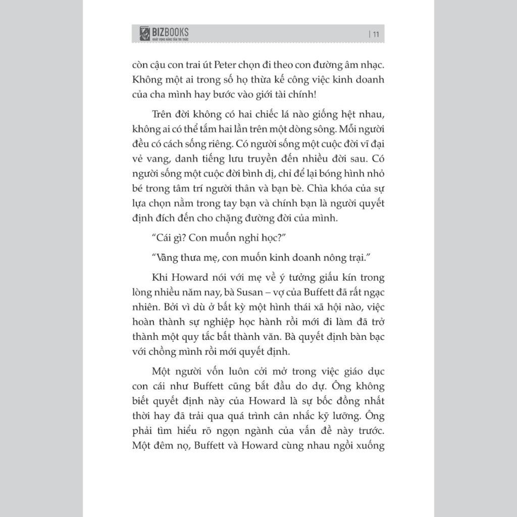 Ông là người cha thành công và giàu có nên những bước đi của con đều do con quyết định bằng những mơ ước tương lai chứ không phải nông nổi nhất thời. Cuộc đời bạn là do bạn tạo nên, hãy đến những nơi bạn muốn đi chứ không phải nơi bạn đang ở. Cuốn sách cũng chia sẻ về quan điểm và phương pháp sống của Buffett, giúp cho người đọc có thể tìm ra giá trị và ý nghĩa thực sự của cuộc sống.