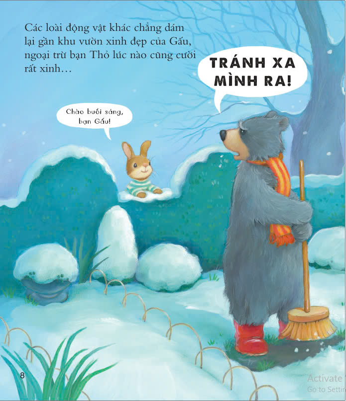 xù lông, cộng thêm vẻ mặt luôn nhăn nhó. Phải làm gì để khiến Gấu nở nụ cười đây? Hay là thử đắp cho cậu ấy CHÚ THỎ TUYẾT xem sao. Và biết đâu... một NGƯỜI BẠN có thể giúp được GẤU nhỉ?
