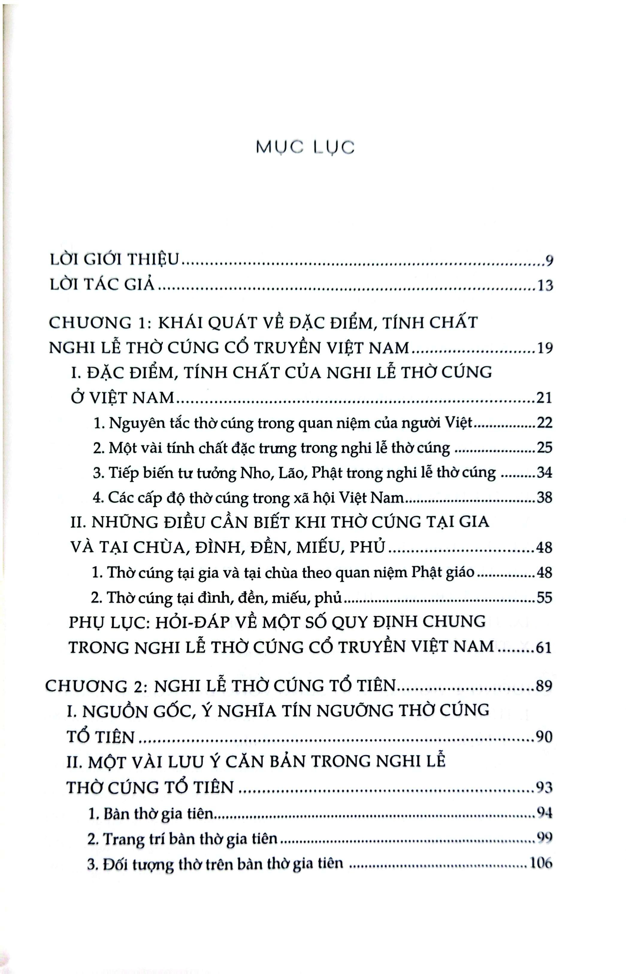 Cuốn sách Thờ cúng cổ truyền Việt Nam - nghi lễ và thực hành nghi lễ của tác giả Trung Chính Quách Trọng Trà tổng hợp và dẫn giải gần như đầy đủ các nghi lễ thờ cúng thông dụng, qua đó hướng dẫn bạn đọc, nhất là các bạn trẻ hôm nay tự m.ình tiến hành các nghi lễ thờ cúng của ông cha một cách đúng đắn, tiết kiệm và văn minh. Với những chỉ dẫn ngắn gọn, cụ thể, từ ý nghĩa cốt lõi của nghi lễ cho đến việc chuẩn bị lễ vật, trình tự các bước tiến hành, cách thức đọc văn khấn, văn lễ, cuốn sách có thể xem như một cẩm nang hữu ích trong mỗi gia đình người Việt.