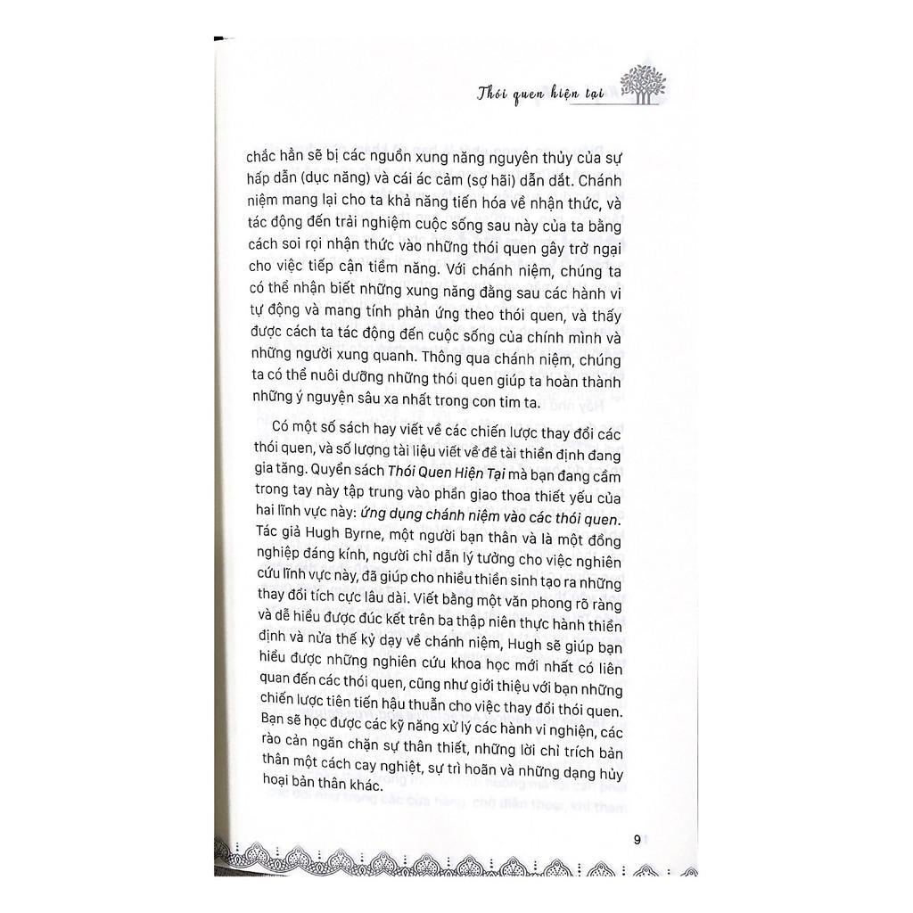 Thói Quen Hiện Tại sẽ hướng dẫn những phương pháp rèn luyện chánh niệm giúp bạn ngừng buông xuôi theo những thói quen tự động và bắt đầu sống trong hiện tại. Bằng cách chú tâm đến các suy nghĩ và hành vi trong khoảnh khắc hiện tại, cuối cùng, bạn sẽ có khả năng buông bỏ những lề thói cũ và tạo ra những thói quen mới lành mạnh hơn, giúp bạn sống tự do và an lạc hơn.
