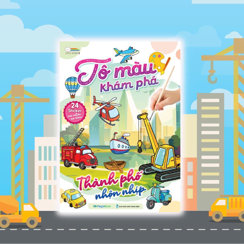 Bộ sách "Tô màu khám phá" gồm 5 cuốn: "Hồ nước trong xanh," "Nông trại vui vẻ," "Thành phố nhộn nhịp," "Thủy cung bí ẩn," và "Vườn thú ngộ nghĩnh. Sách phù hợp với trẻ lứa tuổi từ 3 đến 6 tuổi. Với những cuốn sách này các bé không chỉ thỏa sức tô màu mà còn giúp các em học hỏi và khám phá thế giới muôn màu sắc. Được thiết kế với màu sắc sinh động, sách kích thích sự sáng tạo của trẻ, đồng thời đi kèm với sticker động vật, giúp các em hình dung rõ nét về các loài vật. Hơn nữa, sách còn cung cấp tên gọi bằng tiếng Việt và tiếng Anh cho từng con vật theo chủ đề, giúp trẻ mở rộng hiểu biết về thế giới và học thêm một ngôn ngữ mới - tiếng Anh.