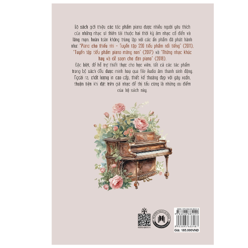 Bộ sách giới thiệu các tác phẩm piano được nhiều người yêu thích của những nhạc sĩ thiên tài thuộc hai thời kỳ âm nhạc cổ điển và lãng mạn, hoàn toàn không trùng lặp với các ấn phẩm đã phát hành như: “Piano cho thiếu nhi – Tuyển tập 220 tiểu phẩm nổi tiếng” (2011), “Tuyển tập tiểu phẩm piano măng non” (2017) và “Những nhạc khúc hay và dễ soạn cho đàn piano” (2018). Đặc biệt, để hỗ trợ thiết thực cho học viên, tất cả các tác phẩm trong bộ sách đều được minh họa qua file Audio âm thanh sinh động. Ngoài ra, chất lượng in cao cấp, thiết kế thoáng đẹp với gáy xoắn, thuận tiện khi đặt trên giá nhạc để thị tấu cũng là những ưu điểm của bộ sách này .