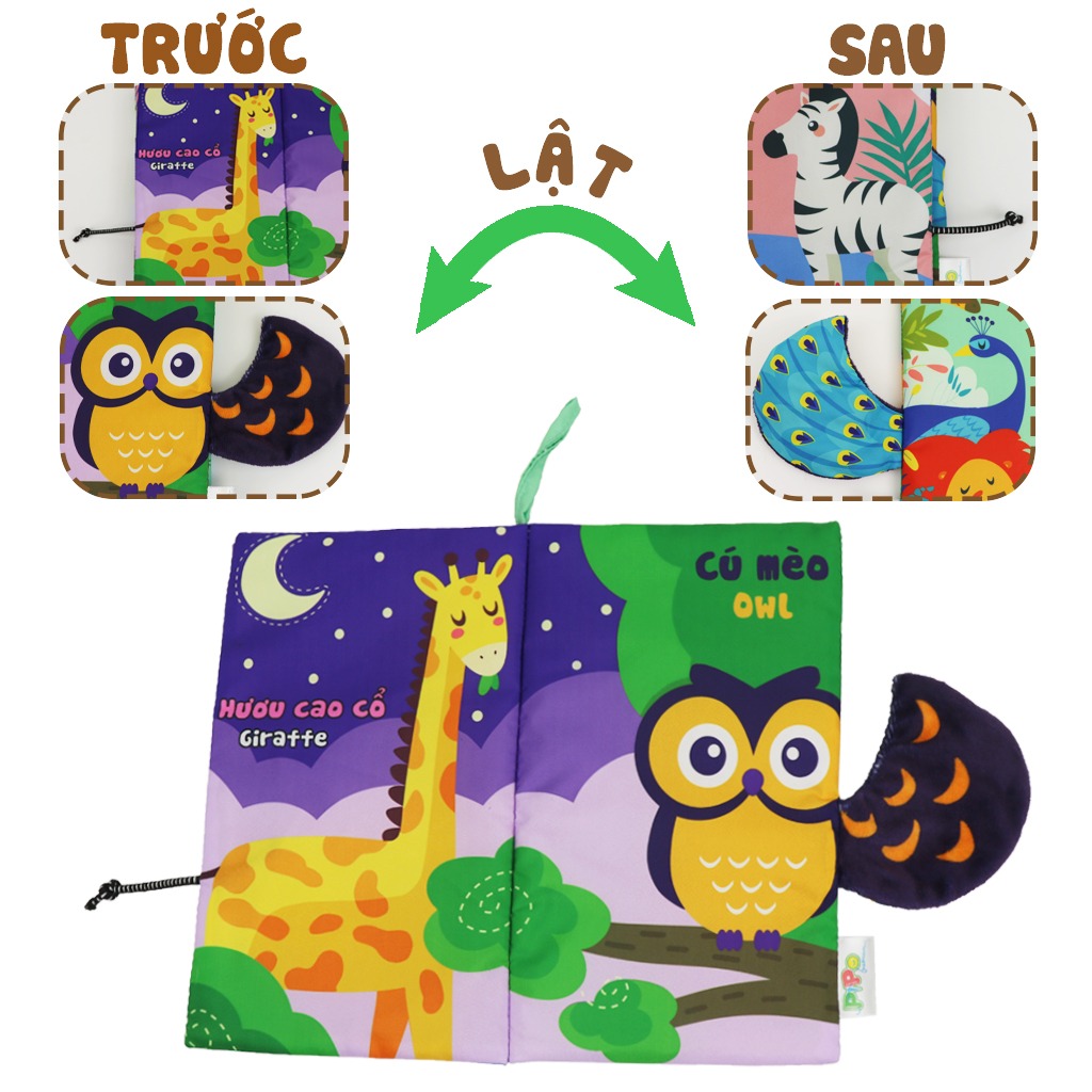 Đồ Chơi Giáo Dục Sớm Cho Trẻ Sơ Sinh - Sách Vải Đoán Đuôi Song Ngữ Việt Anh - PiPo Vietnam Sách vải đoán đuôi đồ chơi an toàn cho bé từ 6 tháng