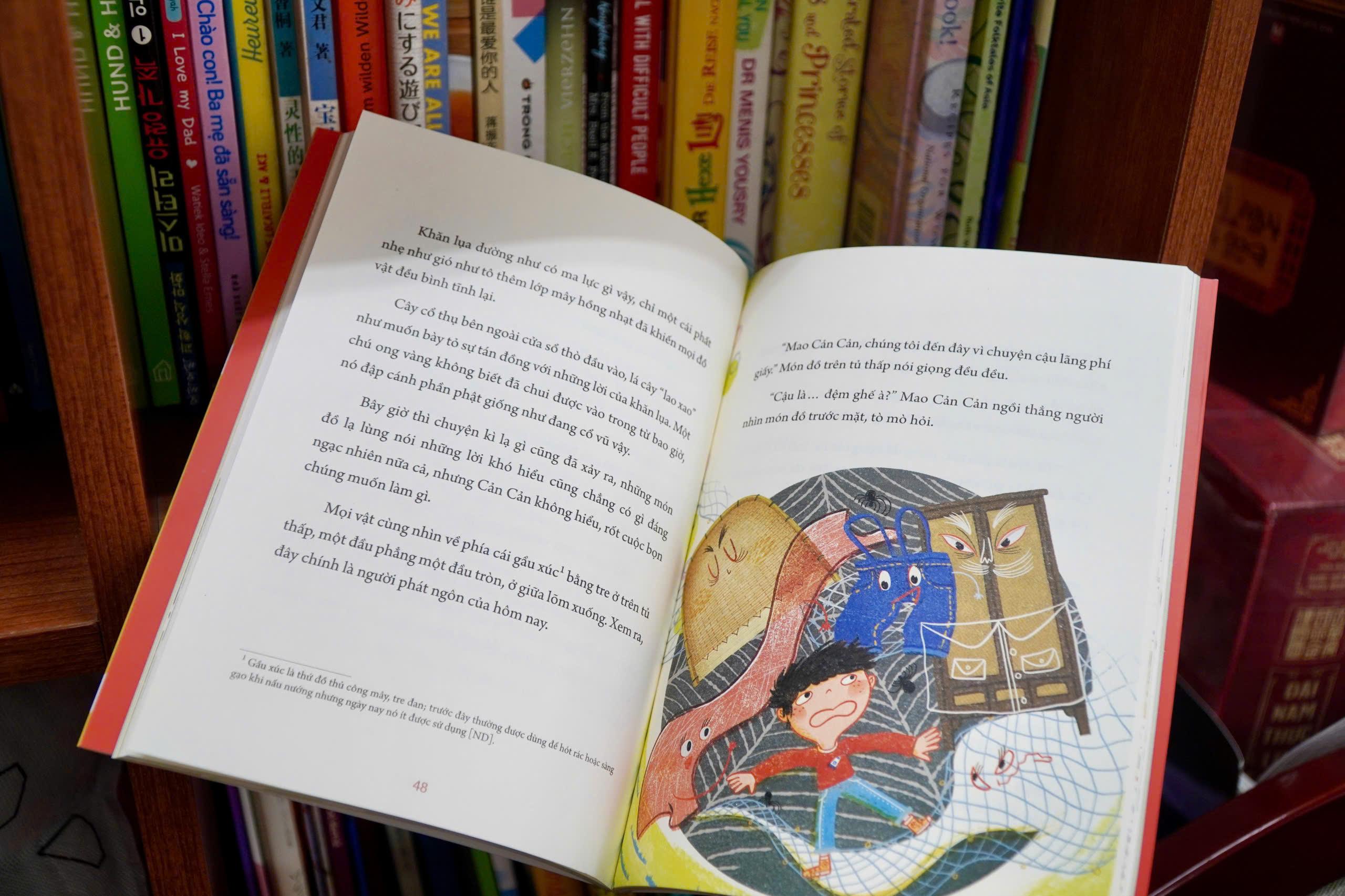 “Cản Cản dùng hết sức lực của m.ình để cầm chắc tấm vé nhưng chẳng biết tại sao, tấm vé trong tay cậu giống như có sức sống vậy, nó ra sức vùng vẫy thoát khỏi những ngón tay của Cản Cản. Tấm vé giống như đang biểu diễn xiếc, trước tiên nó lộn nhào hai cái sang bên, sau đó lại lộn thêm hai cái ra phía sau, sau cùng ngông nghênh cưỡi gió bay vút lên trời cao.