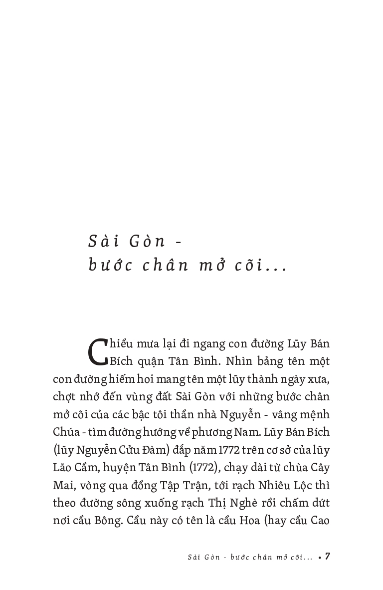 Trải qua hơn ba trăm năm biến thiên lịch sử vật đổi sao dời, vạn bước chân người đi qua đường ngang ngõ dọc, Sài Gòn dần thay màu áo mới, nhiều nơi chốn đã thay tên đổi họ, trở thành hoài niệm với hai chữ “Hồi đó…” vấn vương trong ký ức người cũ. Thước phim thời gian đưa độc giả lần về quá khứ, về với kiến trúc và tàn tích, phố xá và hàng me, rạp hát và cải lương, áo dài và sân trường, sách vở và báo chí… Bước chân đi qua ký ức lại về đến Thành phố Hồ Chí Minh hôm nay, với những con đường lưu đầy dấu xưa chuyện cũ. Hãy lần giở từng trang sách, để bước vào chuyến hành trình ghé thăm những thắng cảnh lịch sử đánh dấu cột mốc hào hùng, lắng nghe âm vang lịch sử còn nhắc lại, hít hà hương thơm cà phê và bát phở sáng của người Sài Gòn, xao xuyến trước tà áo dài xưa mềm mại yêu kiều, đắm chìm trong làn điệu cải lương ngọt ngào da diết... Chuyến hành trình đó mang tên “Sài Gòn - Đi qua ký ức”.