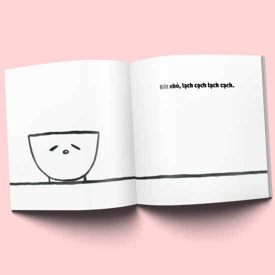 - Gắn từng hoạt động của các bé với đồ vật cụ thể, tăng tính kết nối và trí tưởng tượng dành cho trẻ. Mô tả sản phẩm Chắc hẳn ngoài những món đồ chơi được mân mê hằng ngày, các bé cũng đặt ra những thắc mắc rằng các đồ vật thường gặp trong mỗi bữa ăn là gì, và các bạn ấy giúp bé được gì nhỉ? Bộ sách Đồ vật 4 cuốn: Đĩa nhỏ, Bát nhỏ, Thìa nhỏ, Cốc nhỏ sẽ trao cho các bé từ 0-4 tuổi cơ hội khám phá các món đồ mà bé thường được thấy trong các bữa ăn hằng ngày, từ đó khiến bé thêm hứng thú trong mỗi bữa ăn. Khác với các bộ Ehon đã từng xuất bản, bộ sách Đồ vật lần này đem đến cho các bé trải nghiệm mới với các hình vẽ đơn sắc, chủ yếu mang sắc đen và trắng với những nét vẽ đậm, tinh nghịch, giúp bé định hình và nhận dạng được hình dáng cơ bản của các đồ vật. Phần lớn diện tích các trang truyện sẽ mang màu trắng, tạo cảm giác thoáng đãng, góp phần hình thành sự vui vẻ, lạc quan trong tính cách của trẻ. Các bạn đồ vật sẽ cùng bé khám phá thế giới thông qua các hoạt động chạy nhảy, vui đùa theo đúng ý thích của các bé: bạn Thìa nhỏ chơi trò trốn tìm, bạn Bát nhỏ thường xuyên được rửa sạch sẽ, bạn Đĩa nhỏ thích chơi trò trồng cây chuối trong khi bạn Cốc nhỏ thích lăn qua lăn lại. Những người bạn nhỏ này không chỉ tinh nghịch mà còn rất quan trọng trong cuộc sống, giúp chúng ta rất nhiều nữa. Bạn Thìa nhỏ là một siêu nhân dũng cảm, luôn đưa đồ ăn đến nơi cần đến; Bạn Đĩa nhỏ đựng đồ ăn cho bé, bạn Cốc nhỏ có thể pha một ly sữa thật ngon, bạn Bát nhỏ đem đến một bát cháo thơm phức. Các bạn đồ vật thật thân thiện và tốt bụng phải không? Cuối mỗi cuốn sách trong bộ Ehon Đồ vật, các bé còn vui thích hơn nữa khi được hòa mình cùng các bạn đồ vật nhỏ tham gia vào hoạt động hằng ngày, ăn cháo này, uống sữa này, ăn bột nữa,…Thấy mình được xuất hiện trong các trò vui với các bạn đồ vật, bé sẽ hào hứng hơn với các bữa ăn hằng ngày, linh hoạt hơn trong việc sử dụng các dụng cụ nhà bếp. Khi đọc xong các cuốn Đồ vật, các mẹ hãy bật mí cho các bé biết rằng, ghép bìa cuối của 4 cuốn này lại với nhau, bé sẽ được tham gia vào bữa tiệc thịnh soạn có sự góp mặt của các bạn ấy nhé