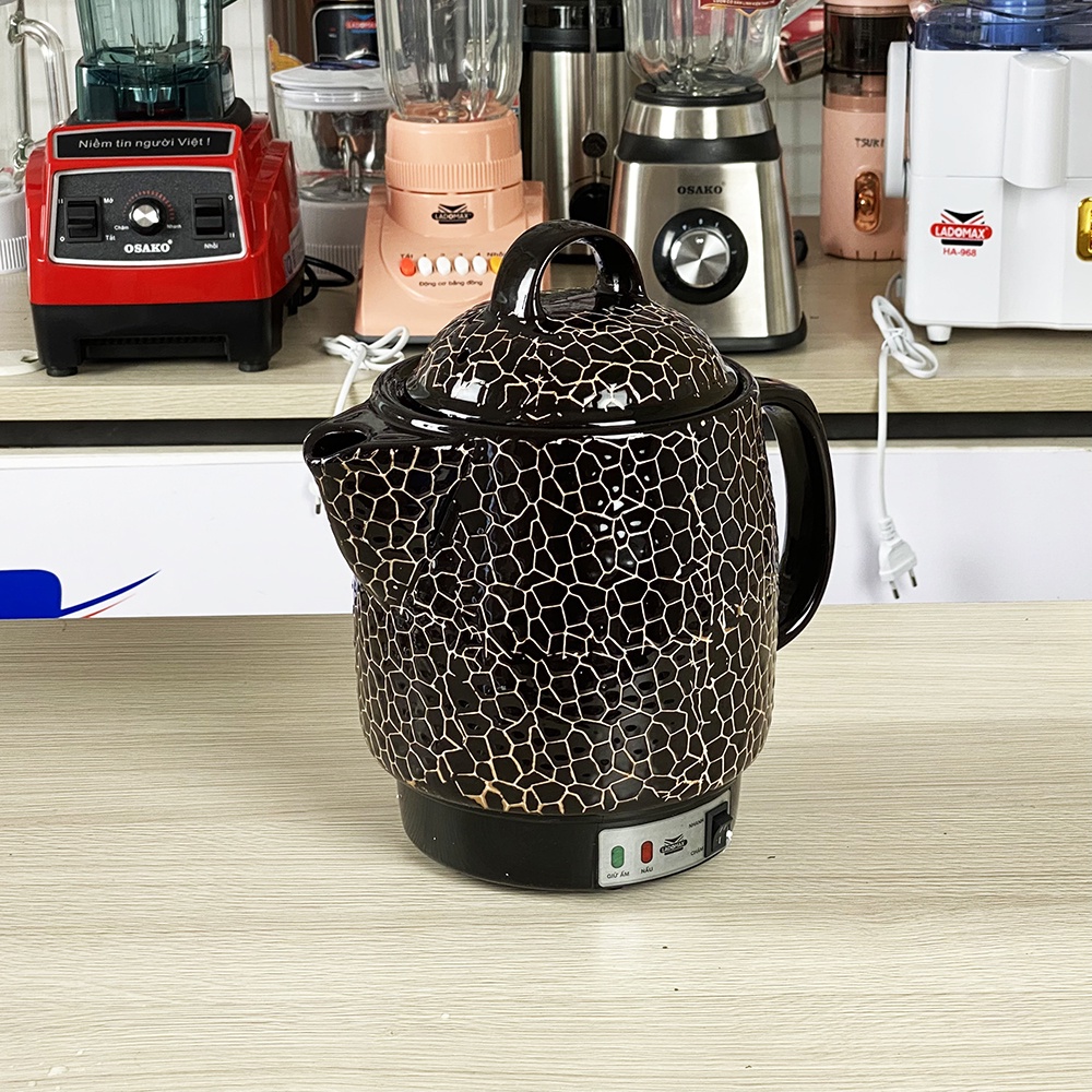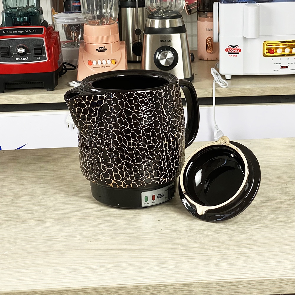 Dung tích: 2.8 L- Công suất: 450W- Thân ấm thiết kế với hoa văn ông già - củ sâm- Nguồn gốc sứ từ làng gốm Bát Tràng nổi tiếng- Chất liệu gốm được nung ở