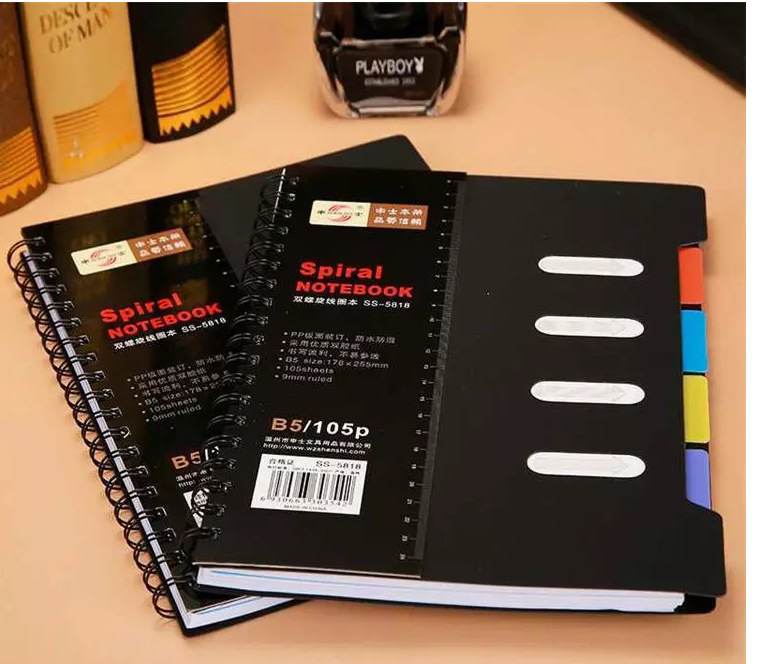 ✨Sổ Lò Xo Bìa Nhựa Phân Trang B5-A5 Bìa Đen 210 Trang Bìa Có Thước Dòng Kẻ Ngang