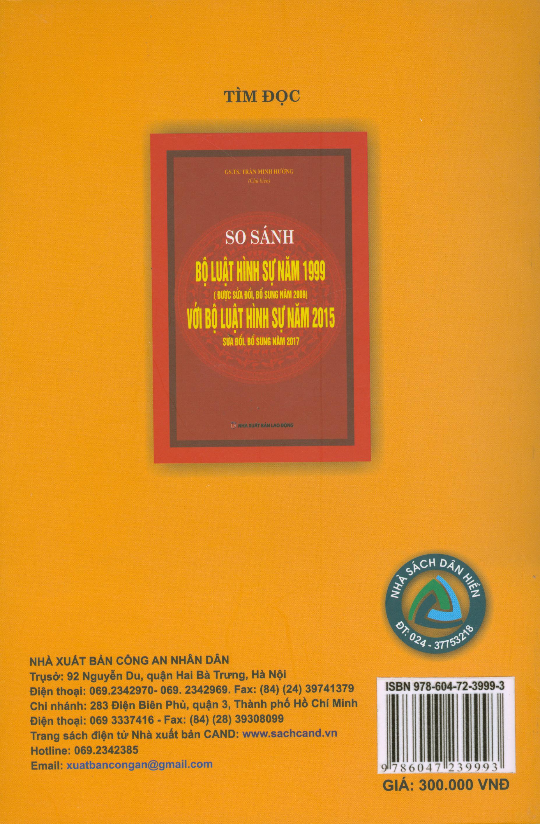 Sách - Chỉ dẫn tra cứu, áp dụng bộ luật tố tụng hình sự năm 2015 ( được sửa đổi, bổ sung năm 2021) Giá bìa: 550000 Nhà phát hành : Dân Hiền Tác giả: