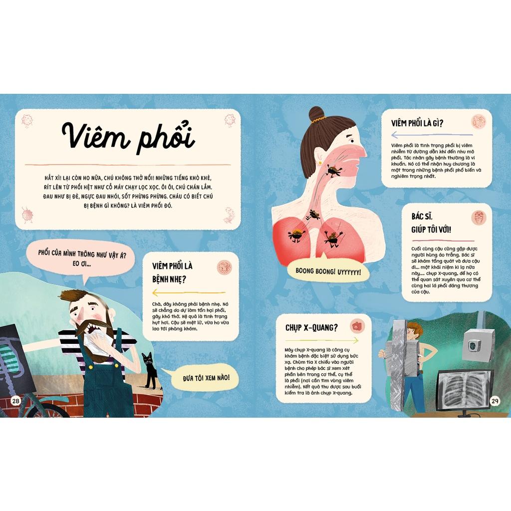 Dù bạn nhỏ tò mò về công việc của bác sĩ hay muốn tự chăm sóc bản thân, giúp đỡ mọi người, cuốn sách này sẽ hỗ trợ ít nhiều. Làm sao để xì mũi đúng cách? Viêm amidan có được ăn kem không? Bị lây chấy phải làm gì? Tại sao cần uống đủ nước? Xử trí nhiệt miệng thế nào?